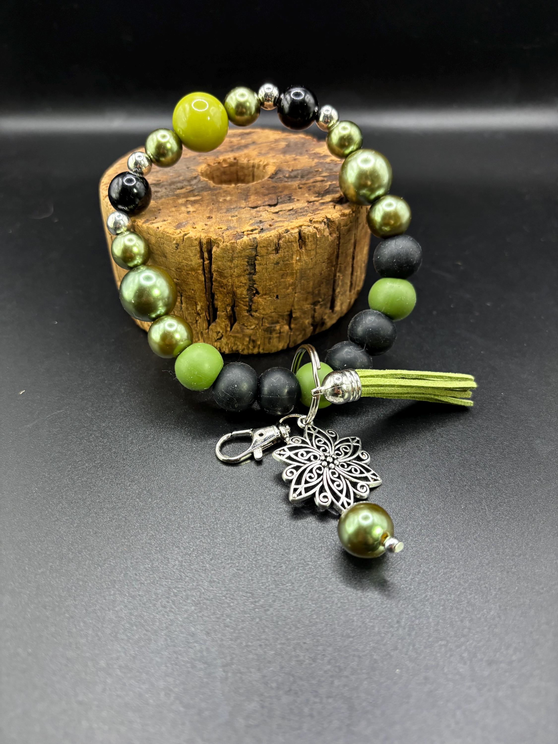 Olive Vintage Beads Green Beaded Wristlet Keychain | Keychain with Silicone | Ton Inspired | Focal | Keychain | Key Fob | Wristlet | Cruise