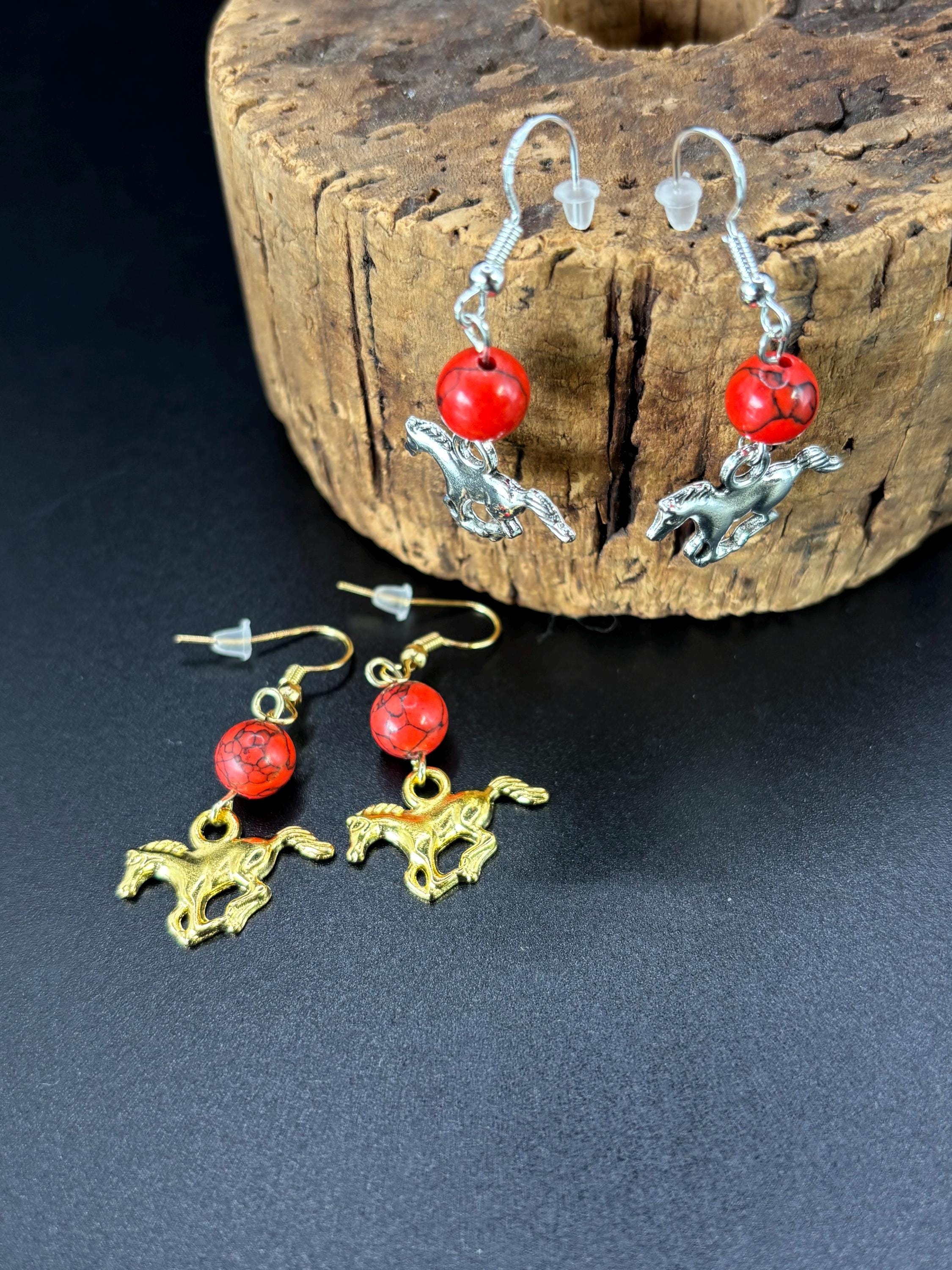 Every 60 years the Fire horse returns. Celebrate the Chinese New year that is predicting a year of transformation with these Horse charm earrings. One on gold filled ear wires and one is sterling silver ear wires.