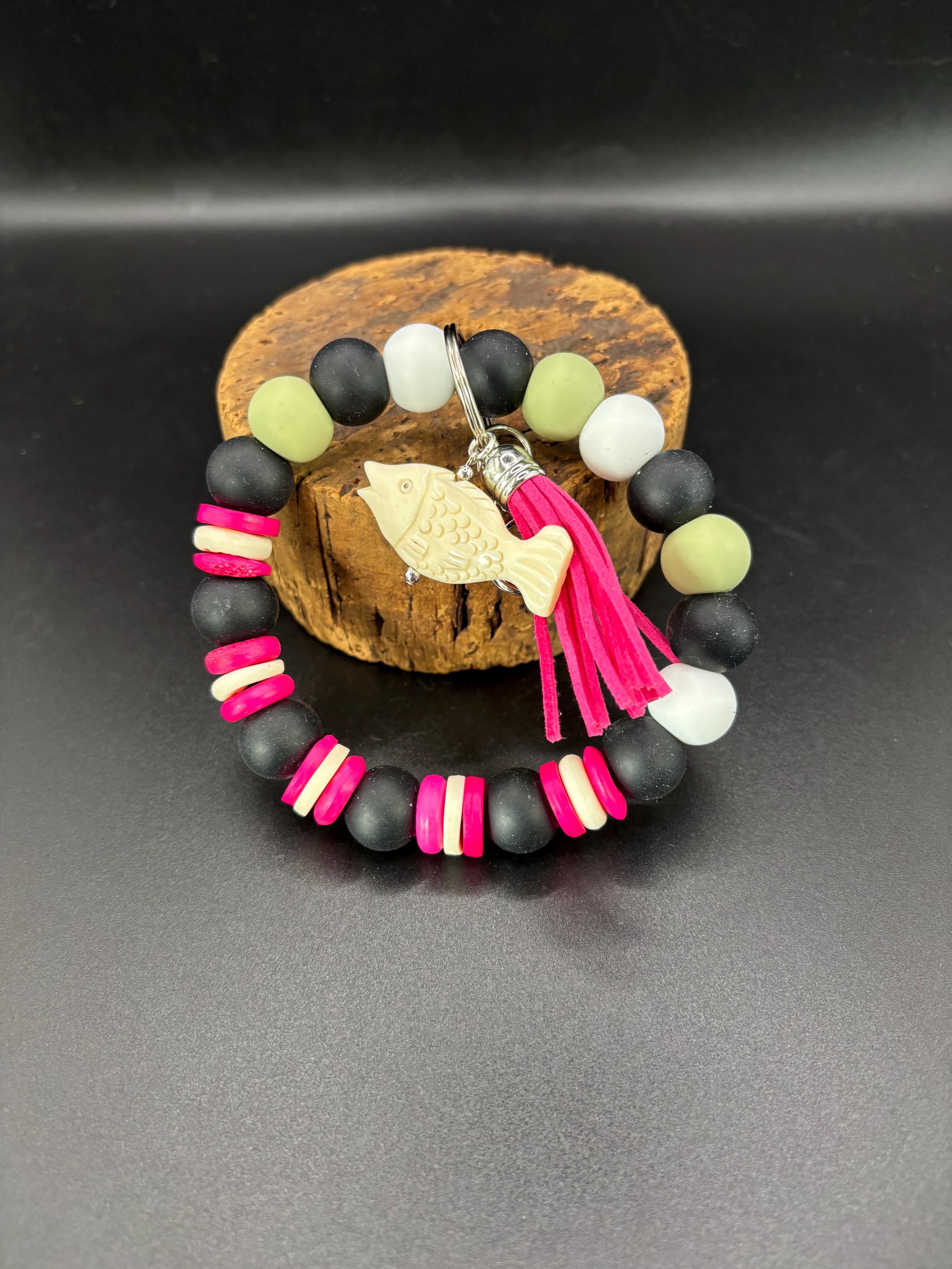 These fun keychains/ wristlets are a great gift for yourself or someone else ! Made with silicone beads.