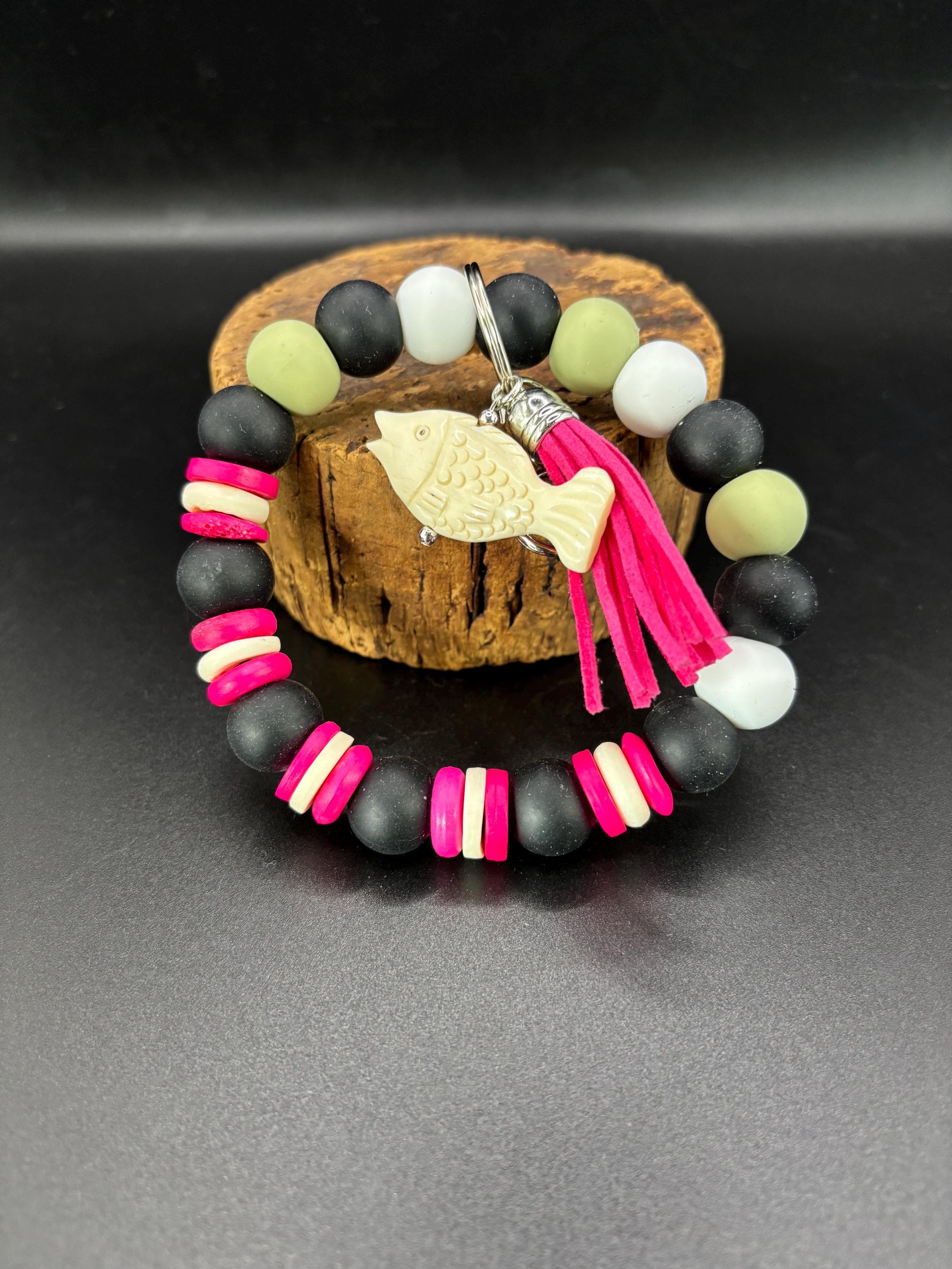 Beach Theme Beaded Wristlet Keychain | Keychain with Silicone and Bonefish Charm | Keychain | Key Fob | Wristlet | Cruise