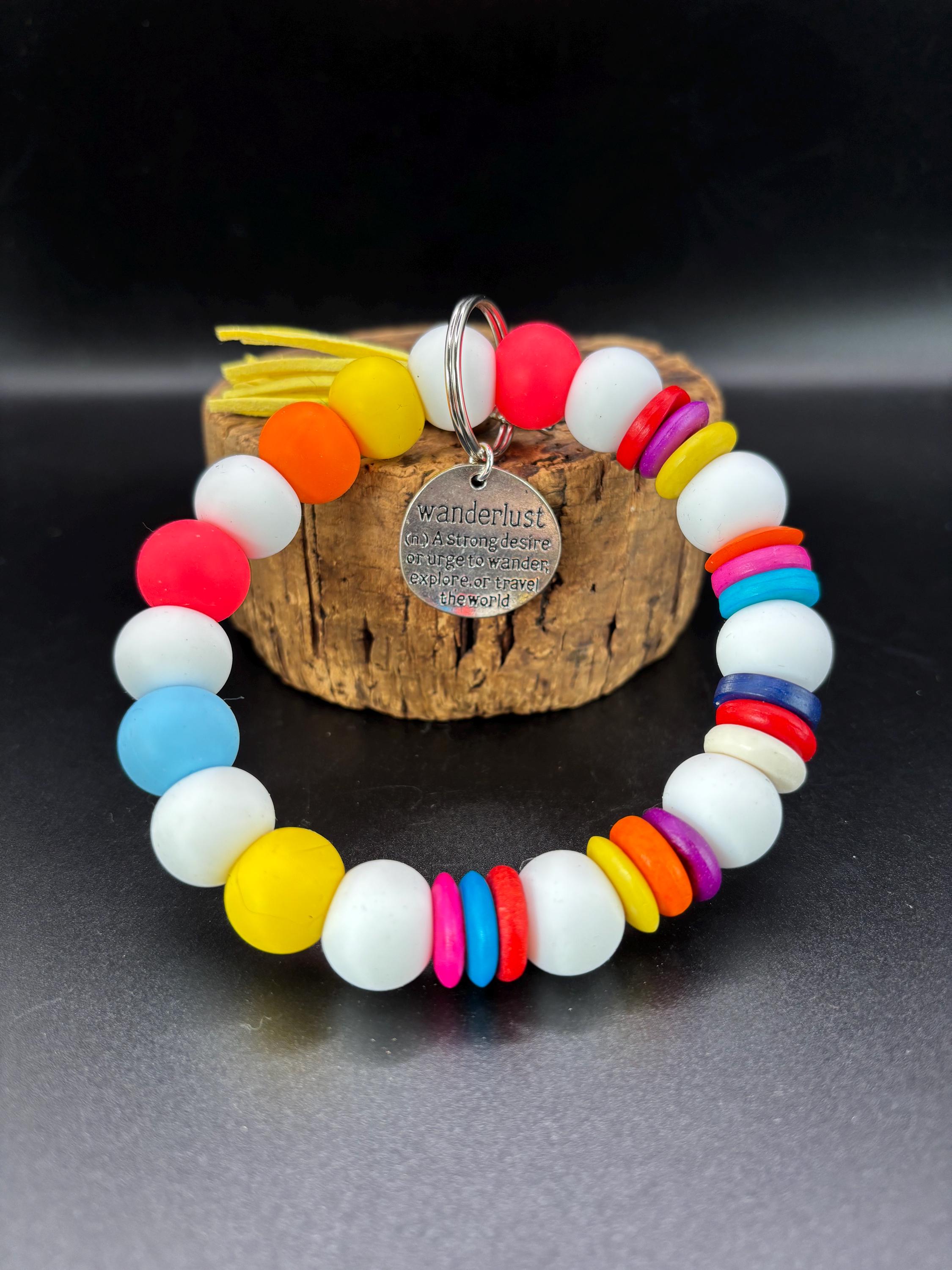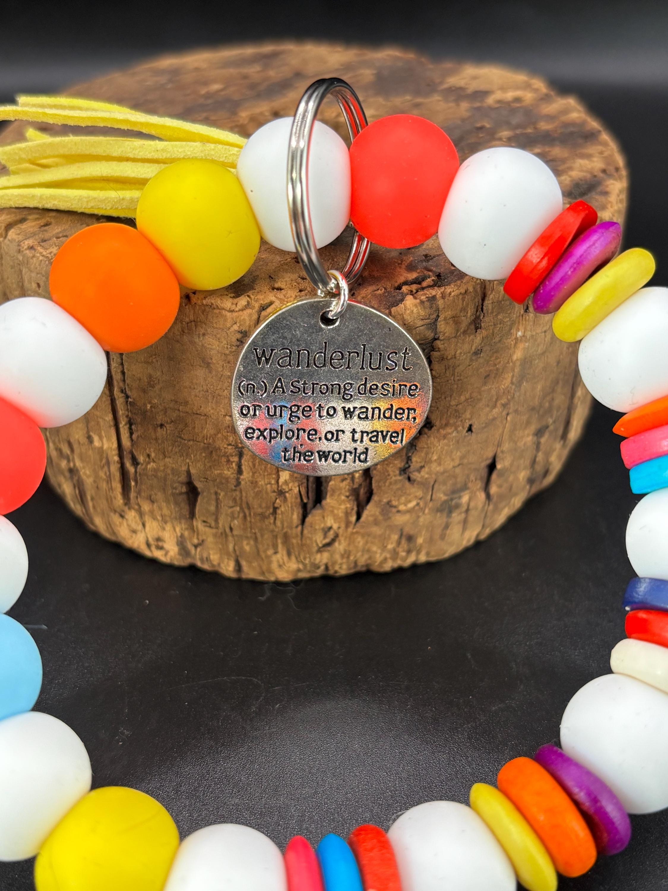 Beach Travel Theme Beaded Wristlet Keychain | Keychain with Silicone and Wanderlust Charm | Keychain | Key Fob | Wristlet | Cruise