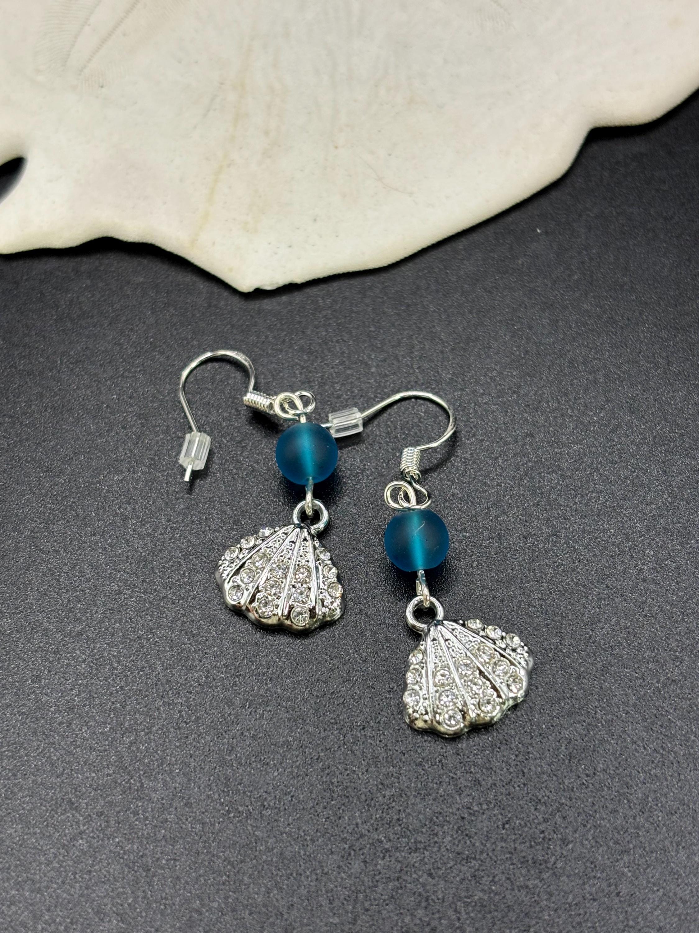 Silver and Crystal Shell and Seaglass Earrings | Seaglass | Beach Glass Earrings on Sterling Silver