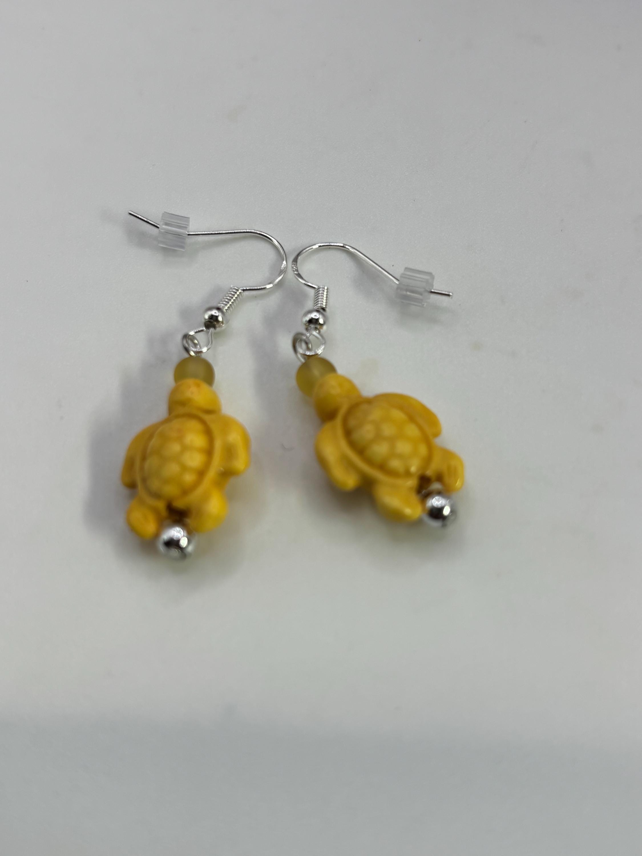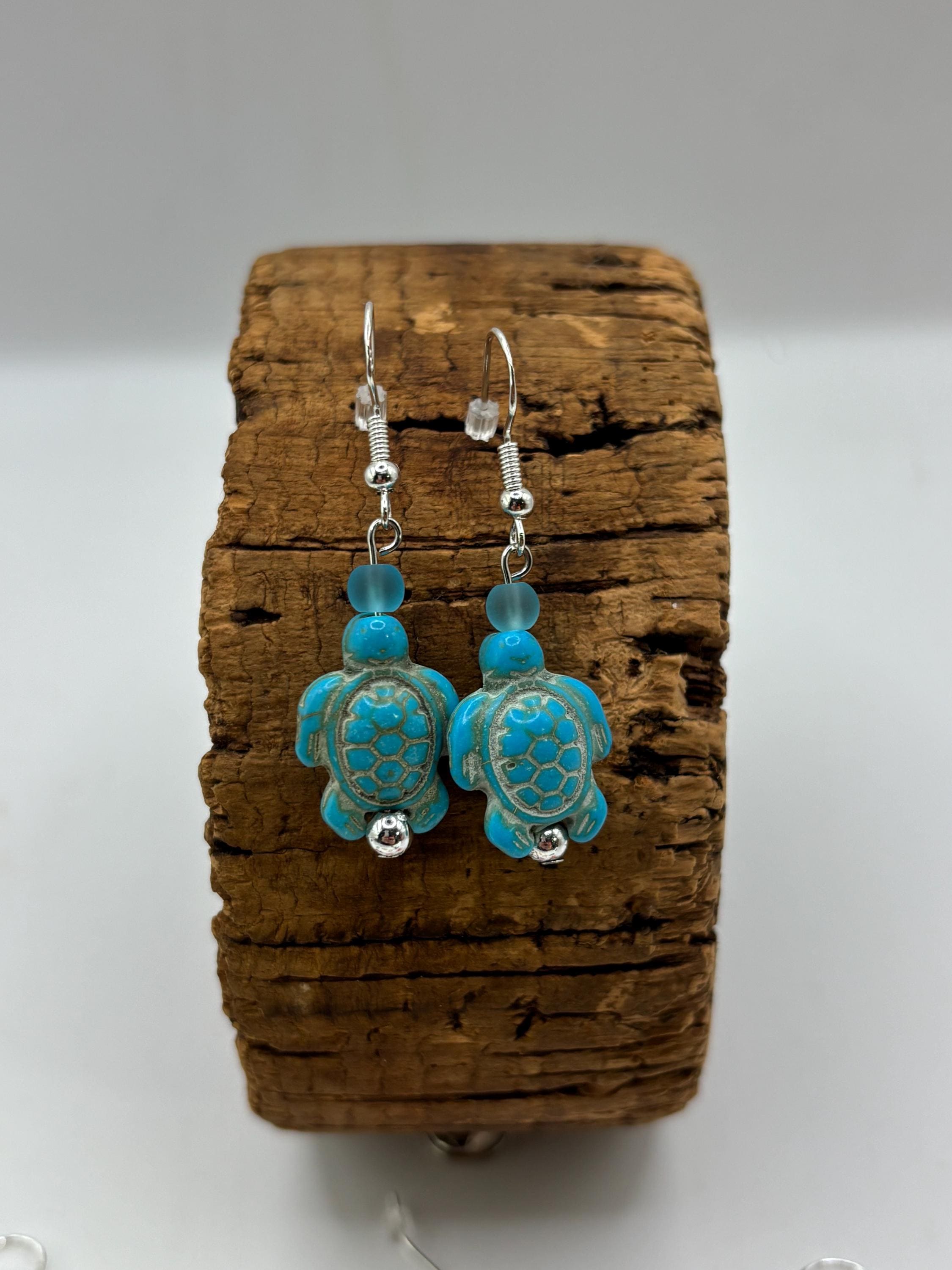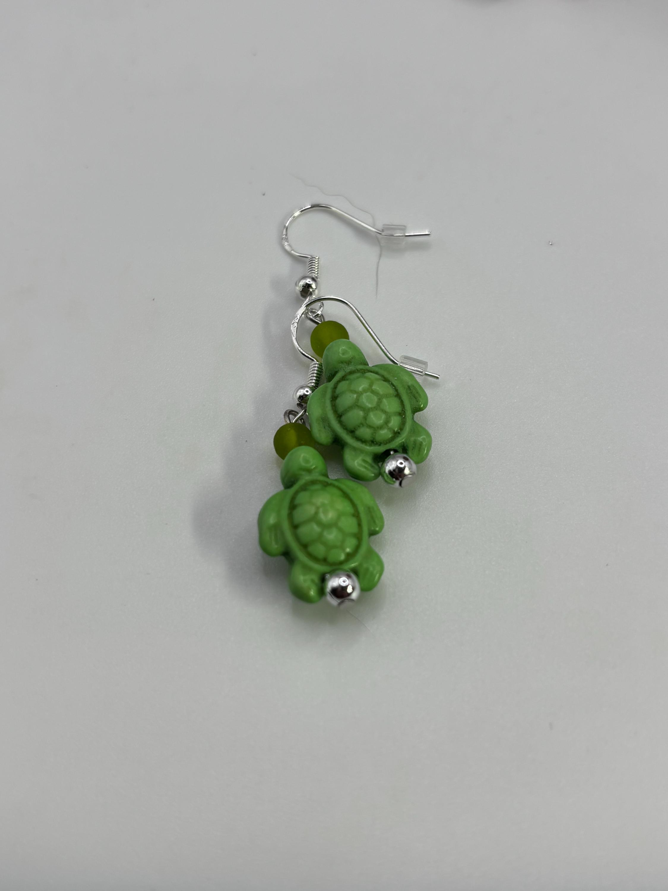 These earrings are made with Turquoise Hoote turtles on sterling silver ear wires.