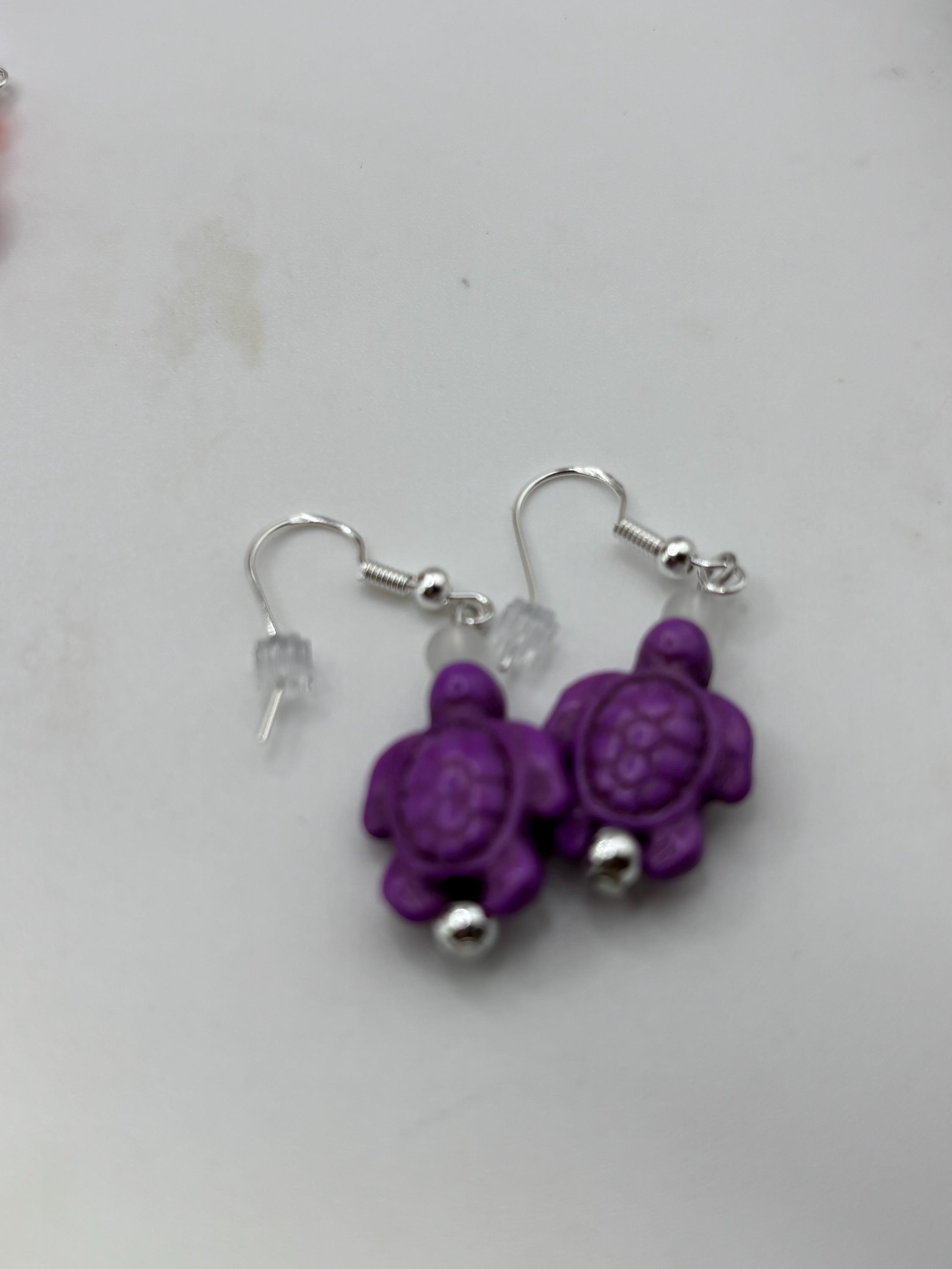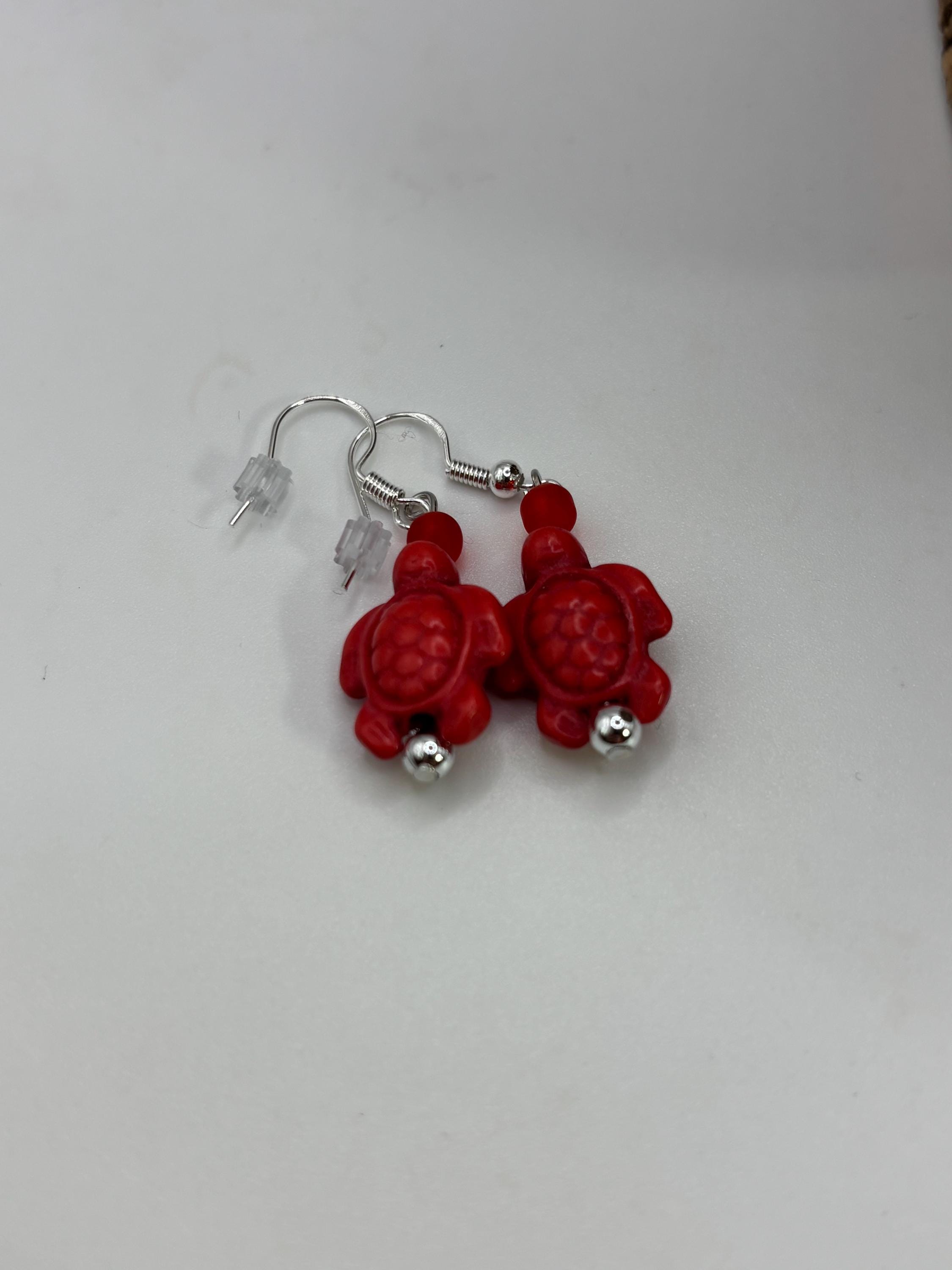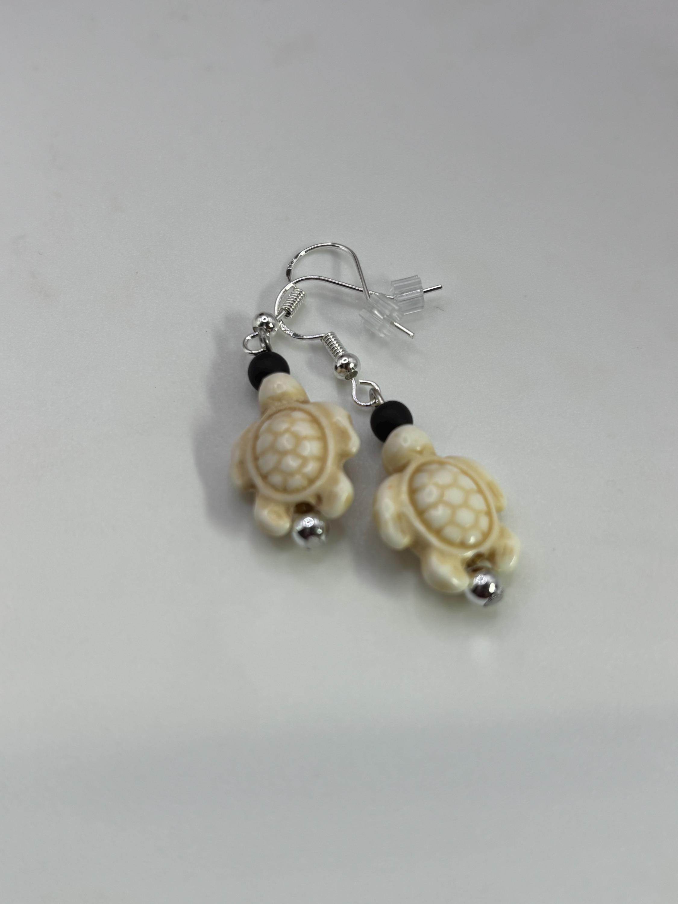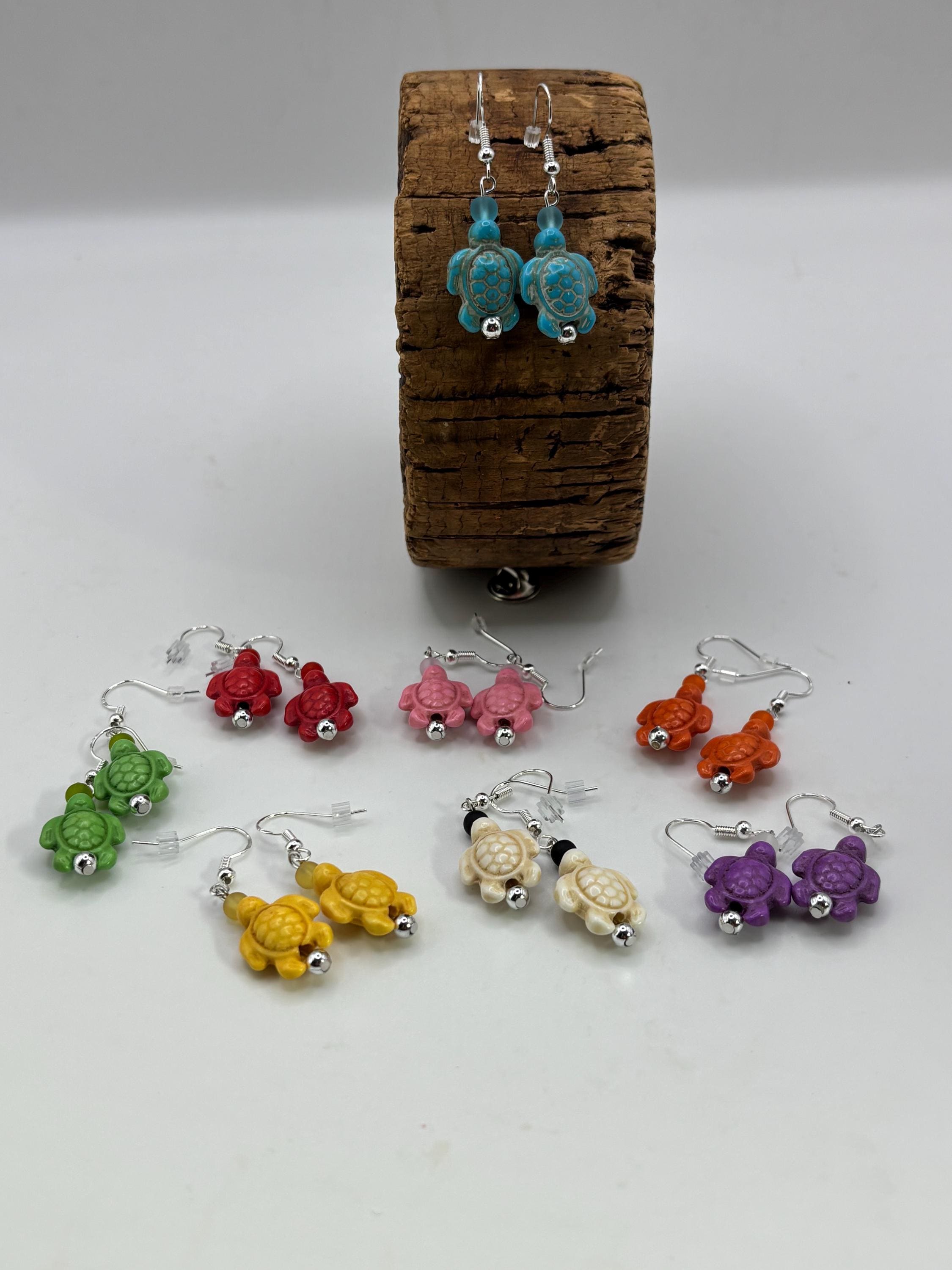 These earrings are made with Turquoise Hoote turtles on sterling silver ear wires.
