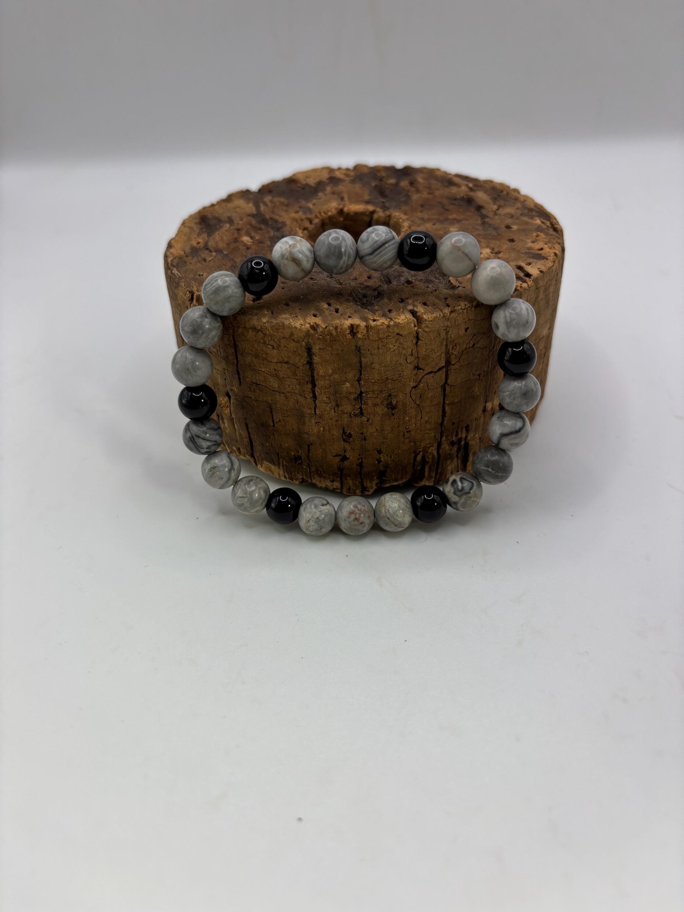 This stretch bracelet is created with Gray Feldspar gemstones.
