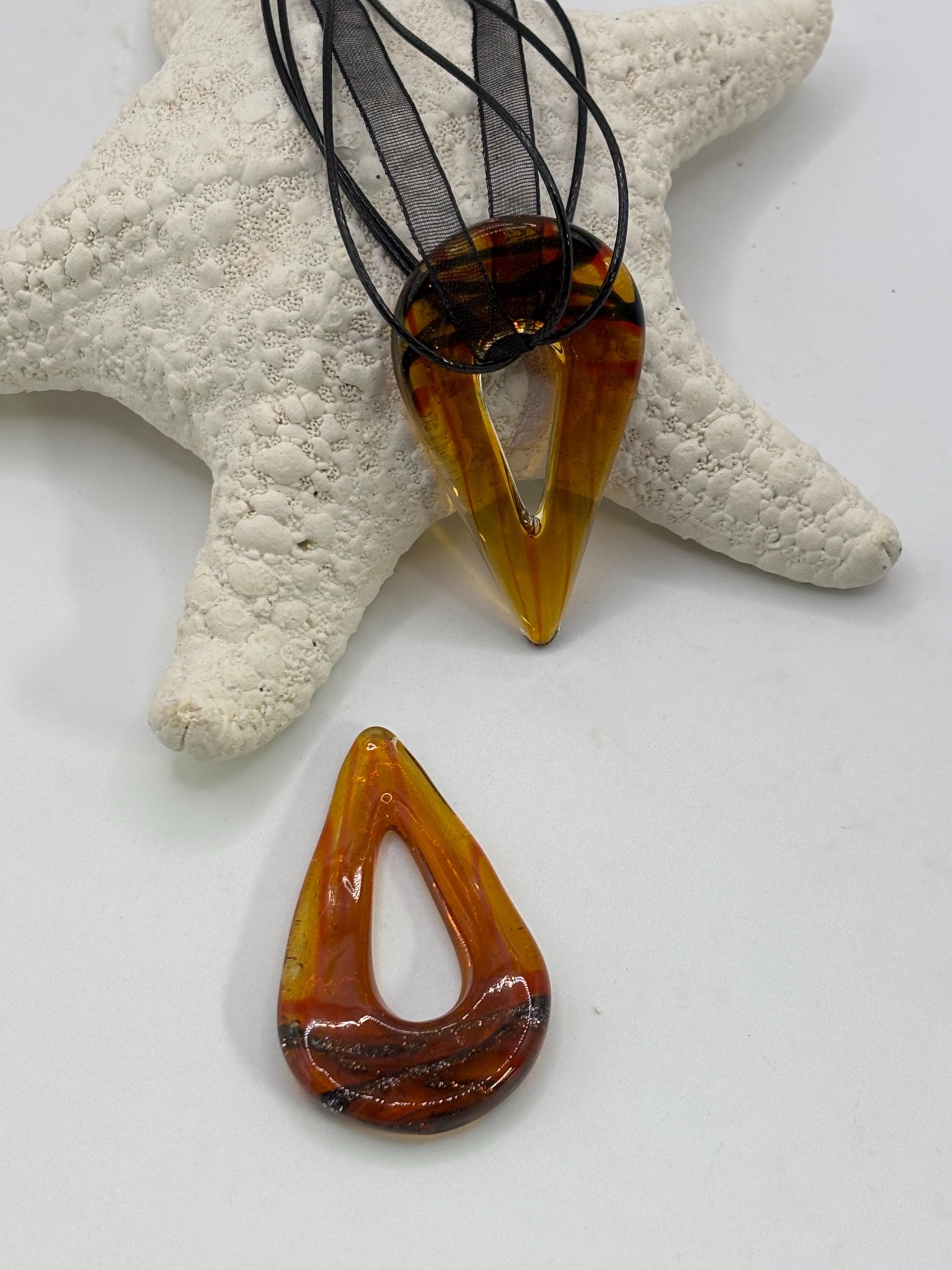 These pendants are made of lampwork glass in the shape of a teardrop. The color is topaz/ yellow .