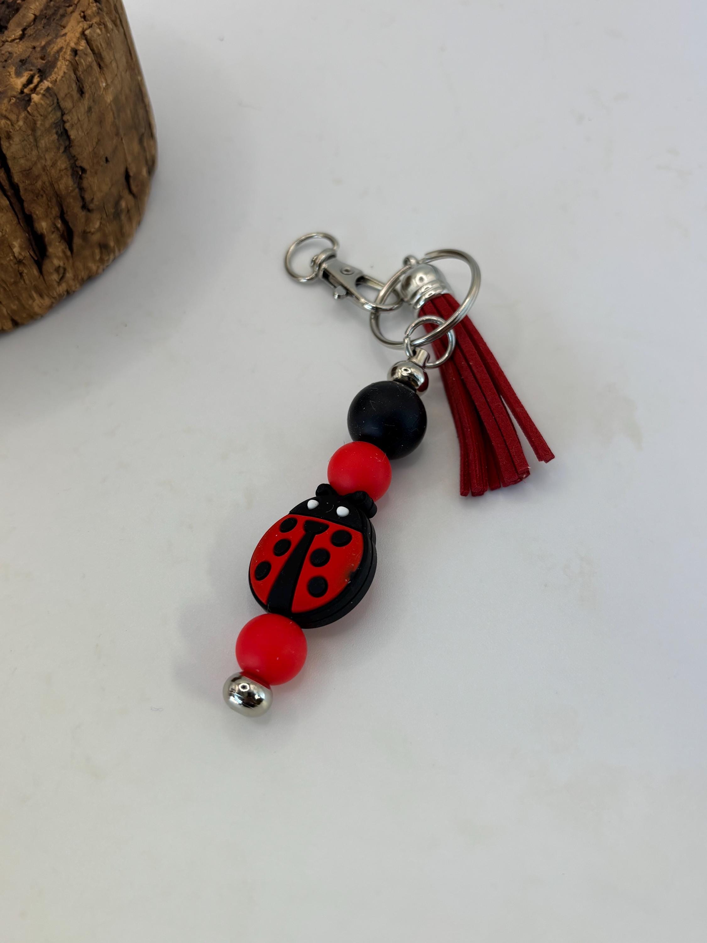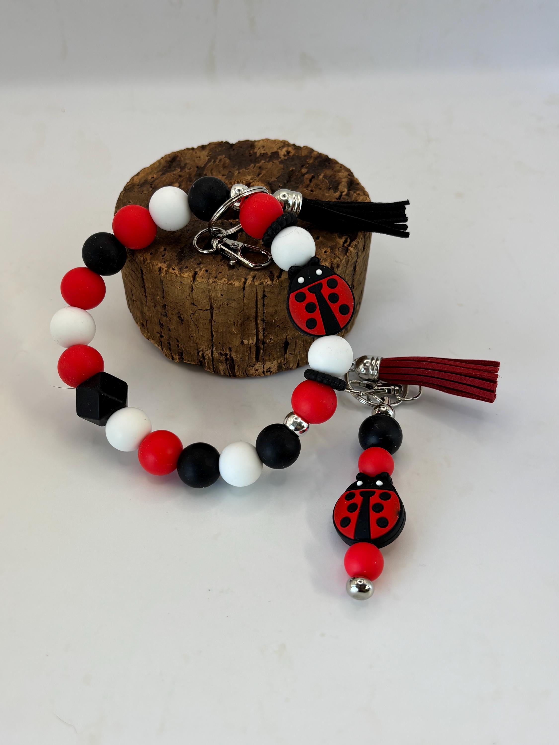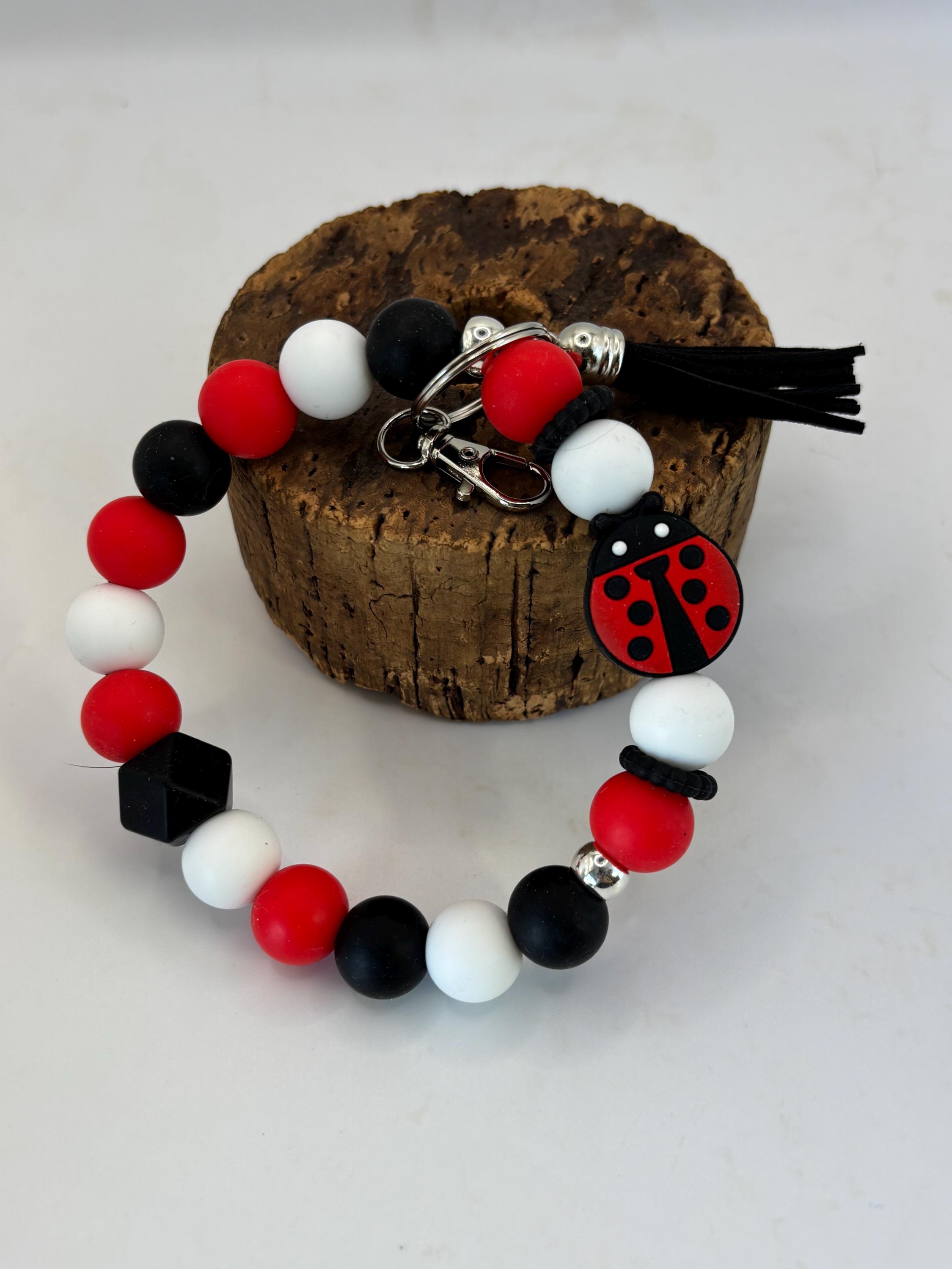 Lady Bug Beaded Wristlet Keychain | Keychain with Silicone and Lady Bug Focal | Keychain | Key Fob | Wristlet | Cruise