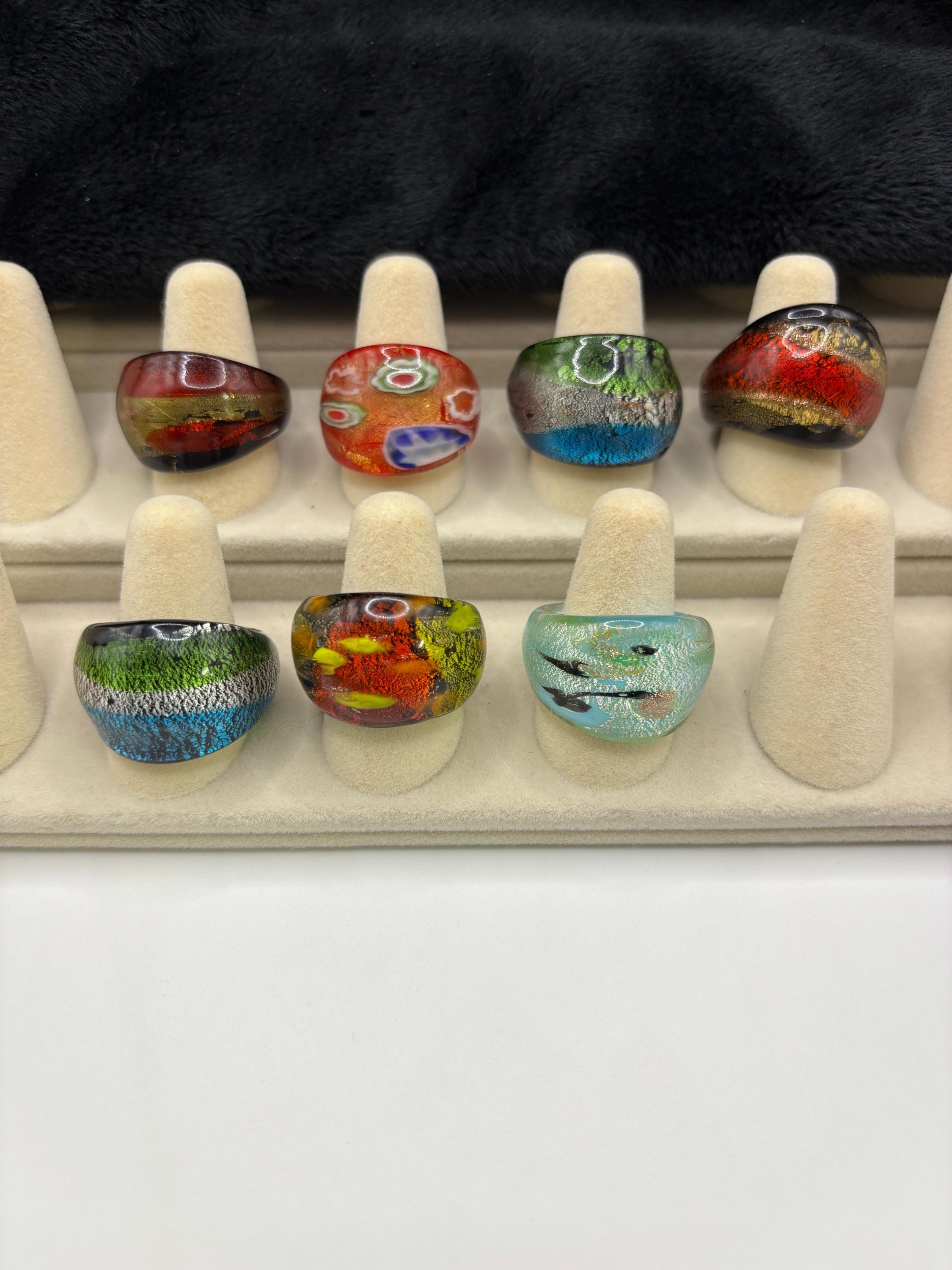 There will be many options by style, color and ring type. There are Millefiori designs as well as Murano inspired glass rings to chose from.