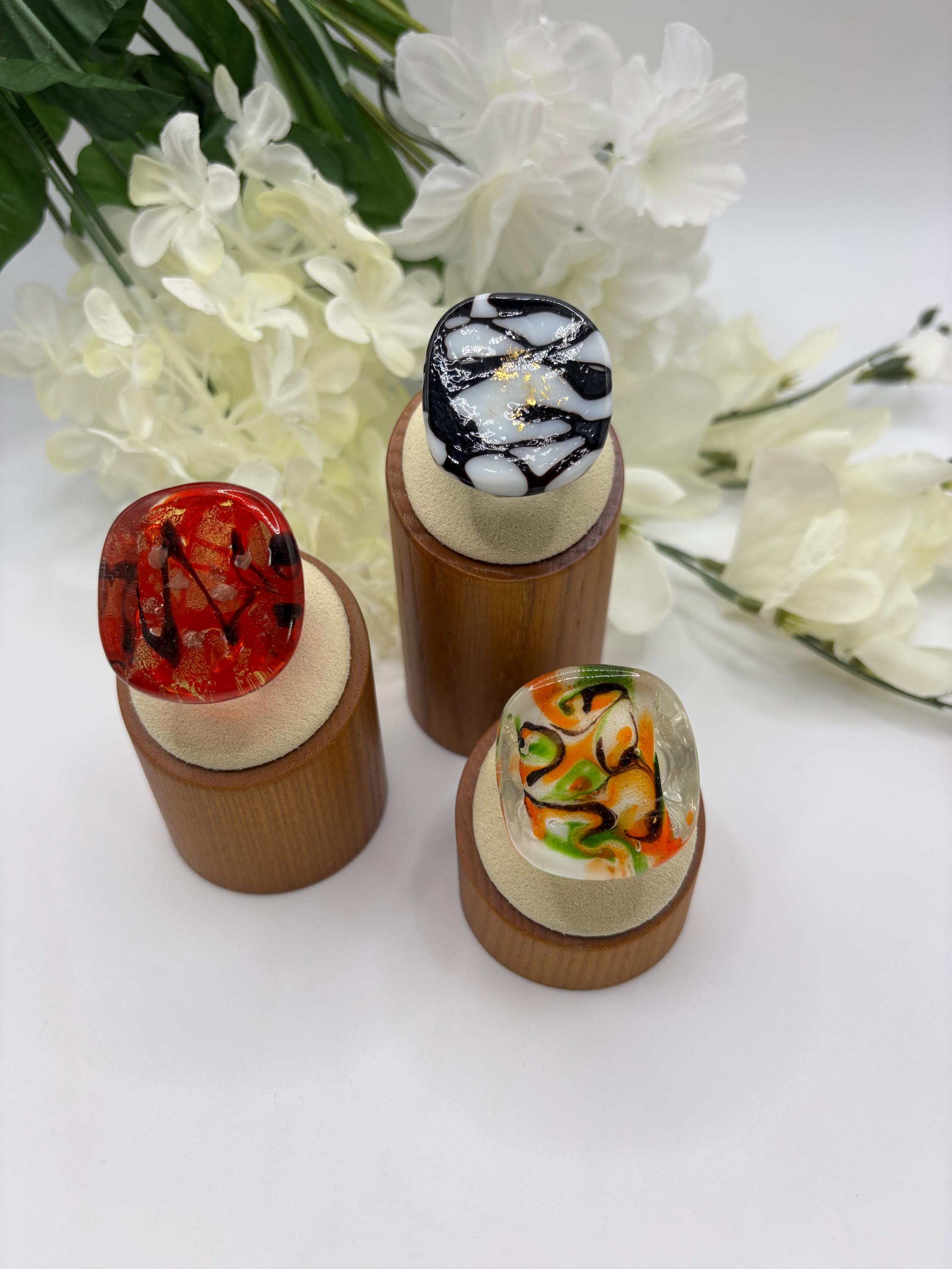 There will be many options by style, color and ring type. There are Millefiori designs as well as Murano inspired glass rings to chose from.
