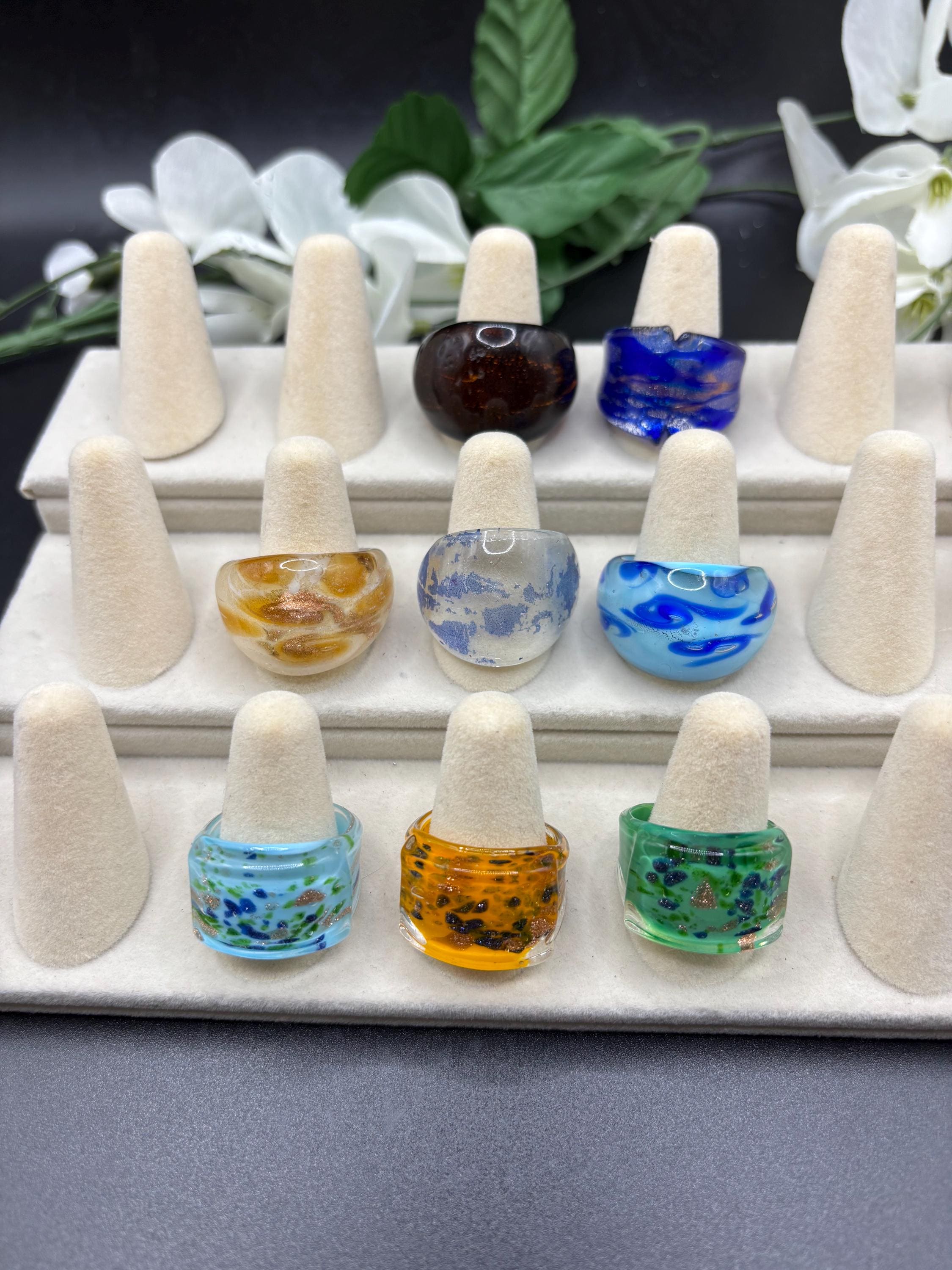 There will be many options by style, color and ring type. There are Millefiori designs as well as Murano inspired glass rings to chose from.