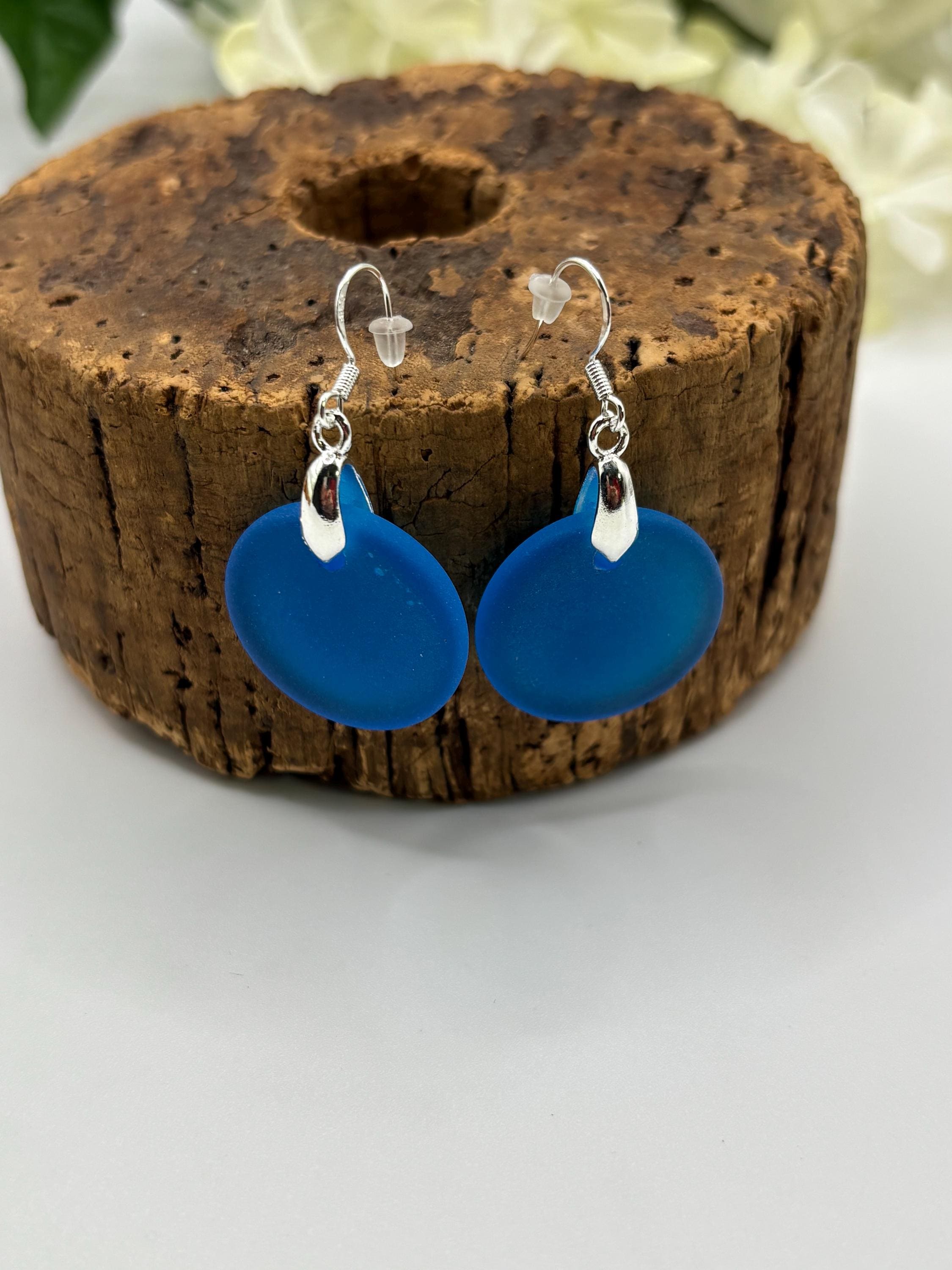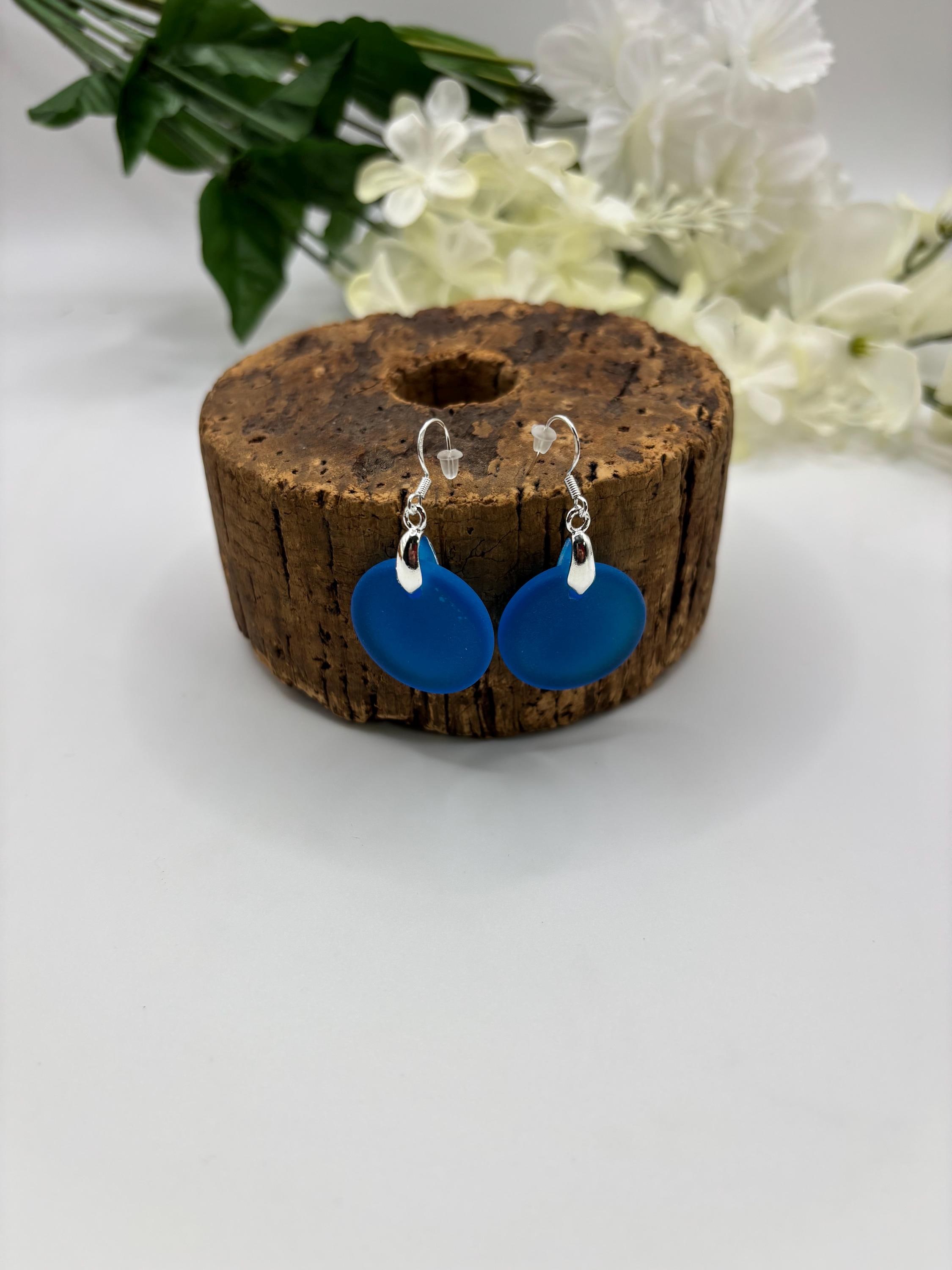 These pretty Seaglass earrings are made with pacific blue Seaglass. They are on Sterling Silver ear wires
