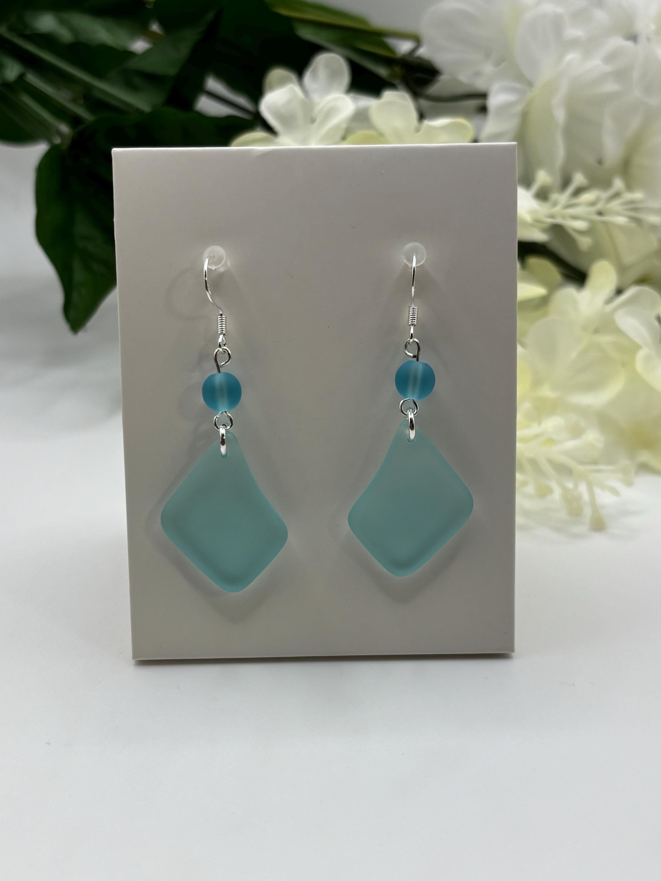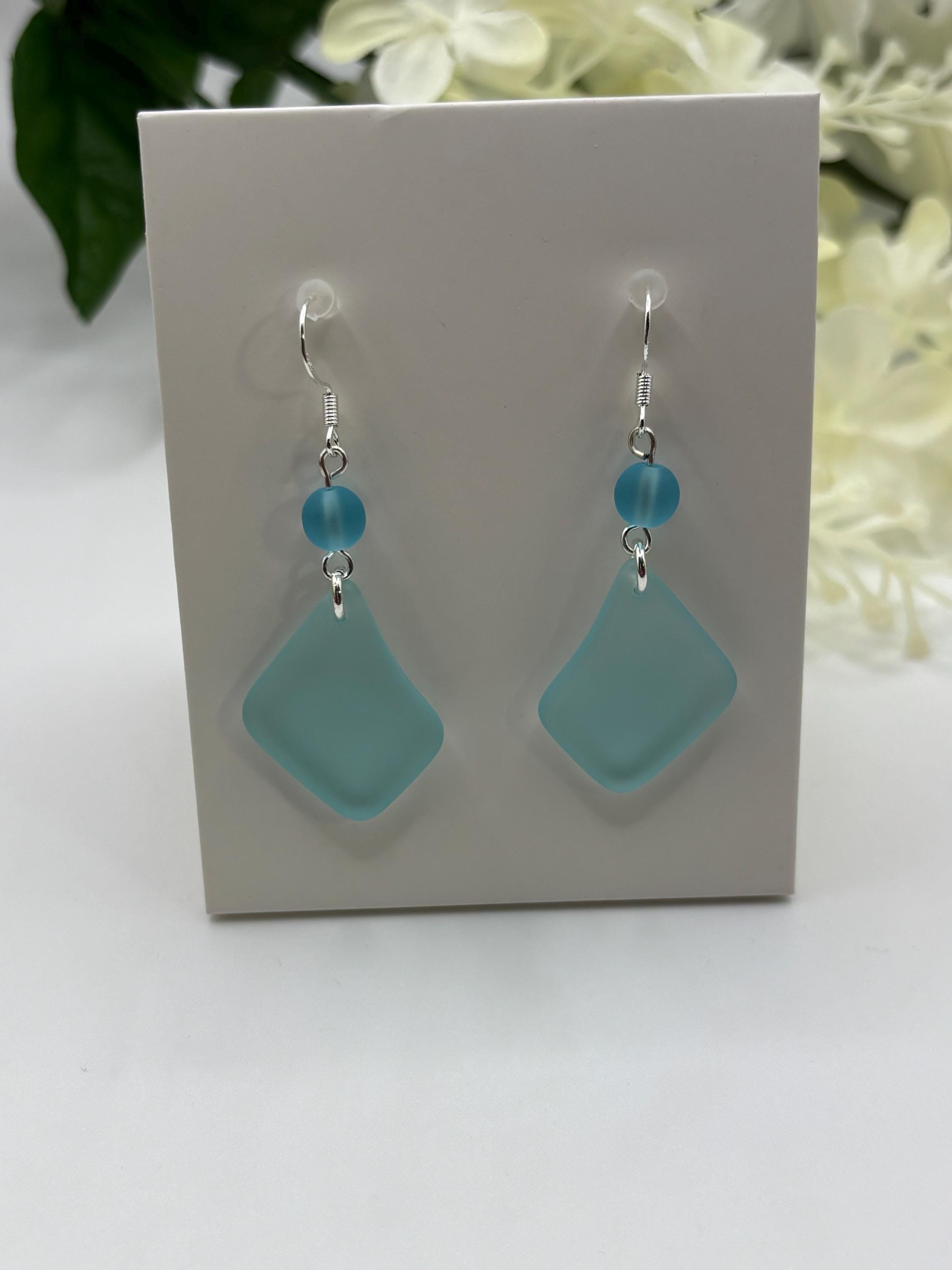 These pretty Seaglass earrings are made with turquoise blue Seaglass. They are on Sterling Silver ear wires