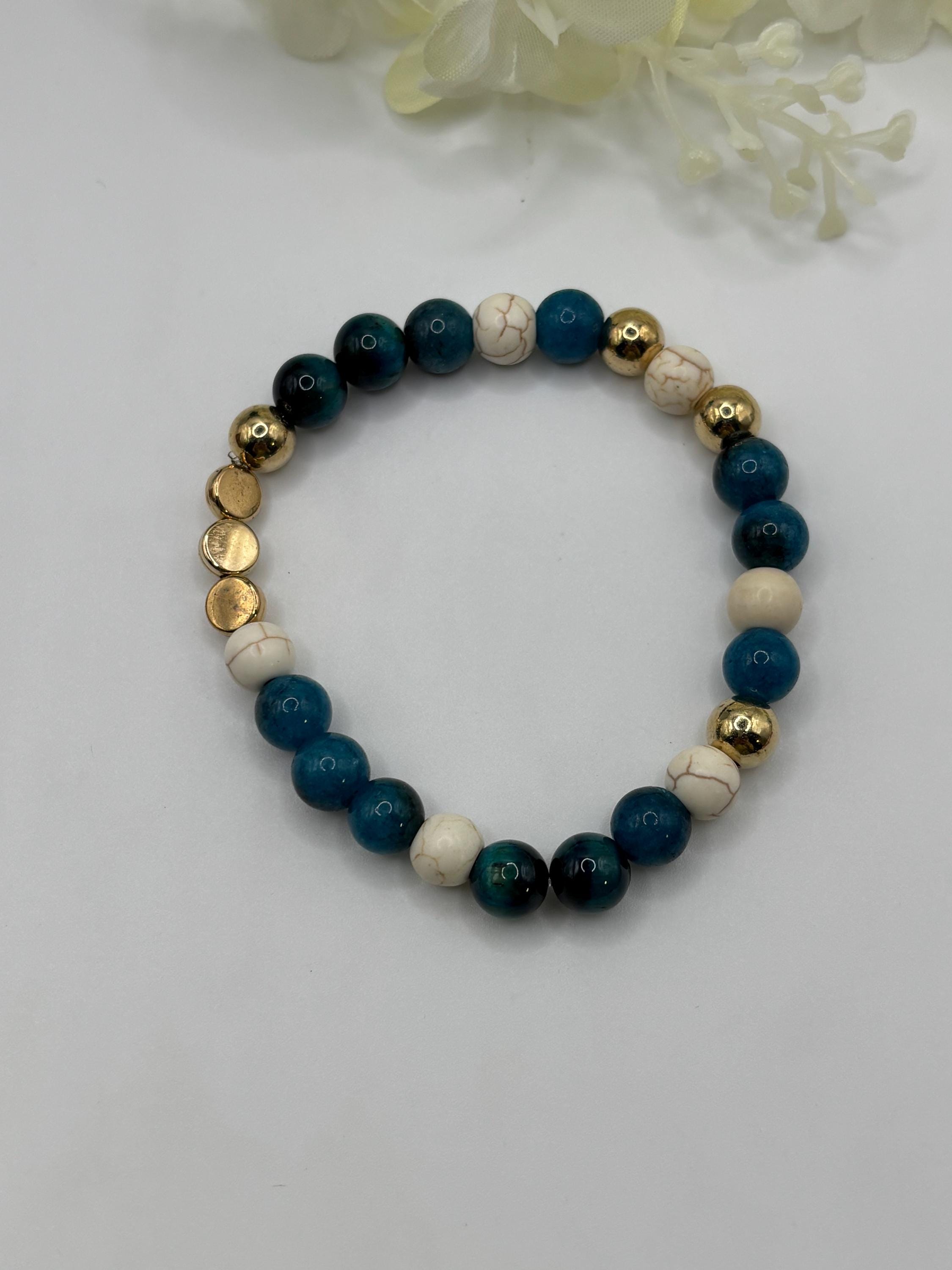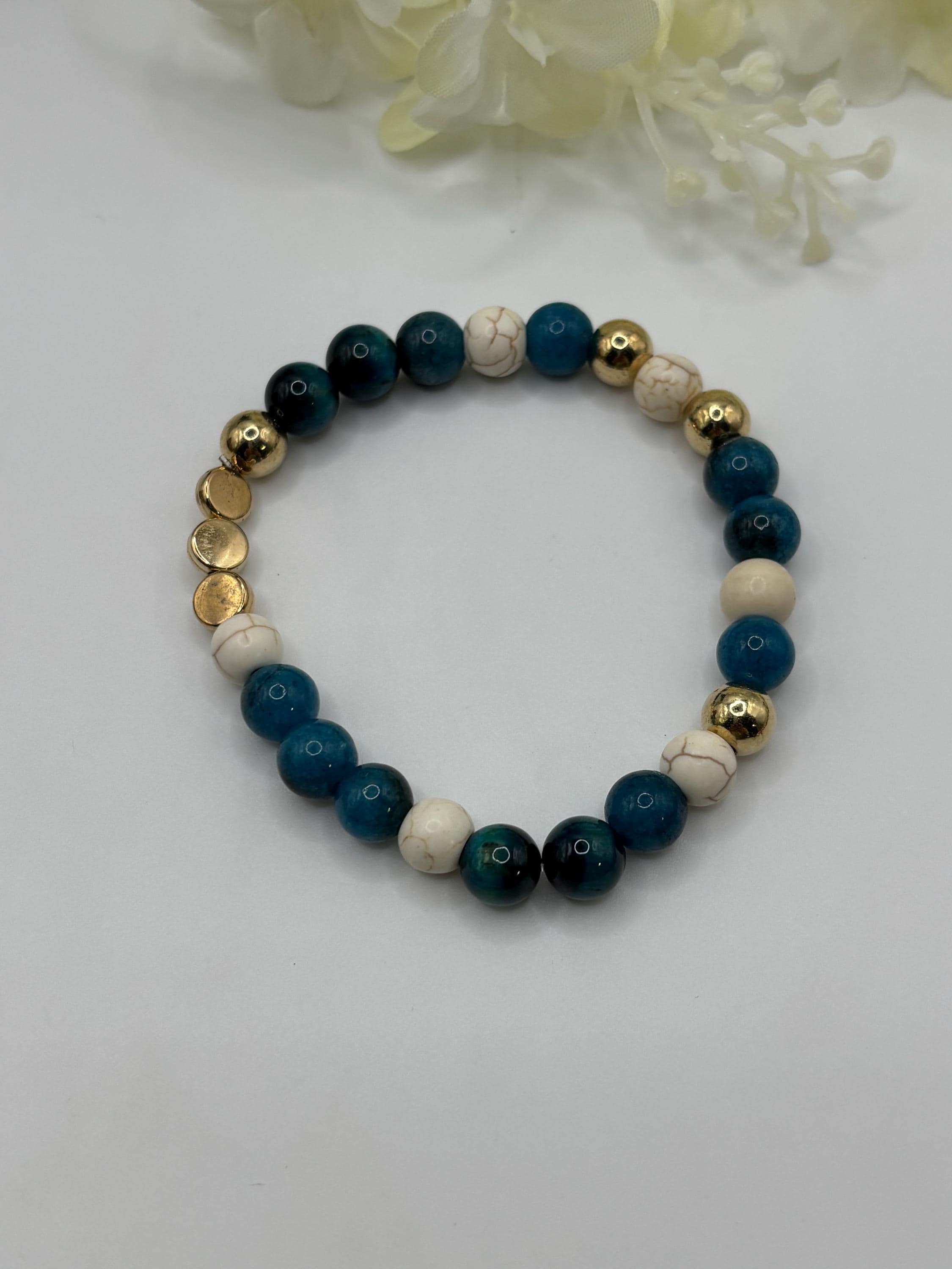 Blue Tiger Eye and Howlite Gemstone Bracelet | Gemstone bracelet | Stretch Bracelet | Morse Code bracelet | Badass |