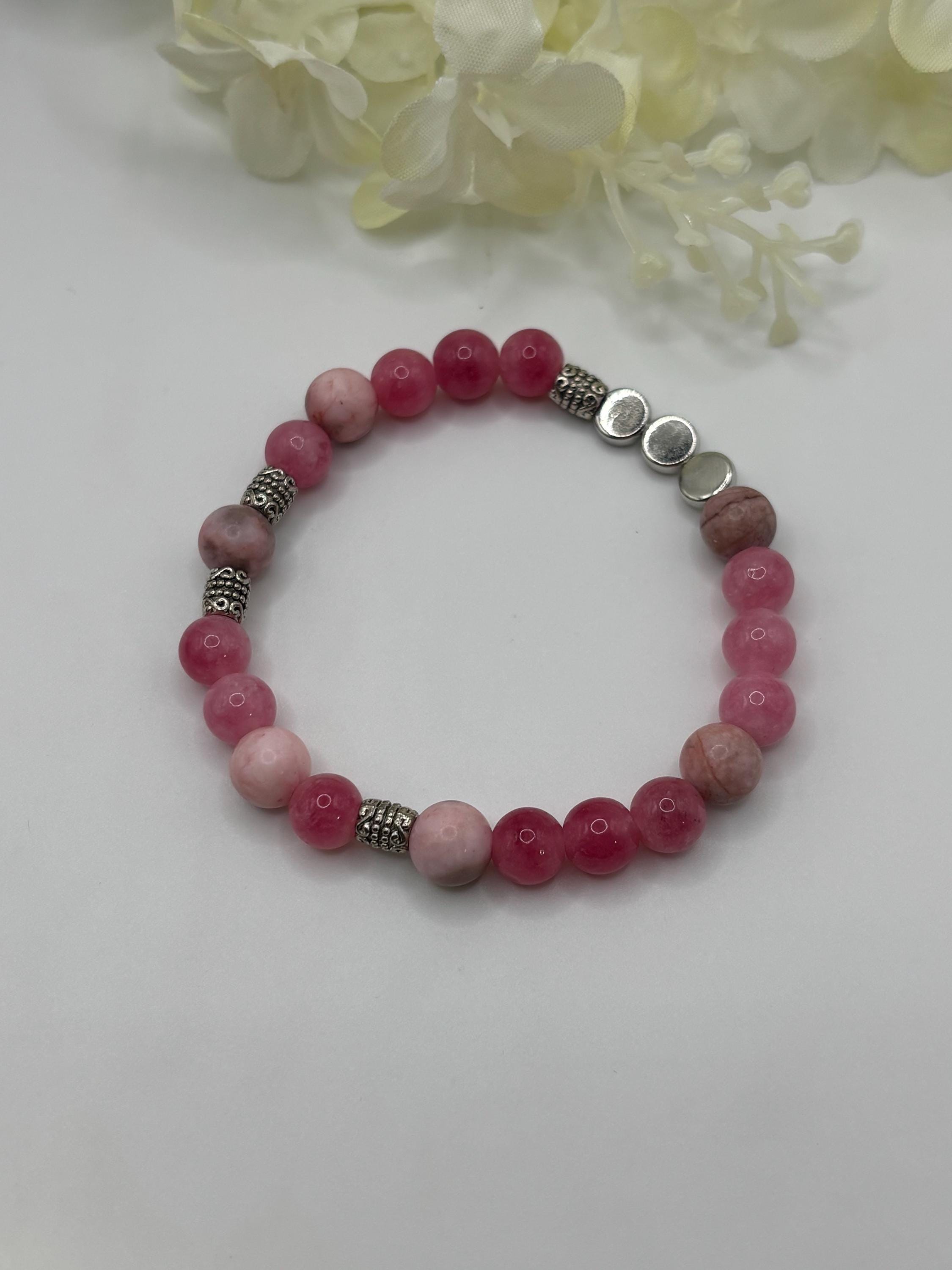 Pink Jade Gemstone Bracelet | Gemstone bracelet | Stretch Bracelet | Morse Code bracelet | Badass |