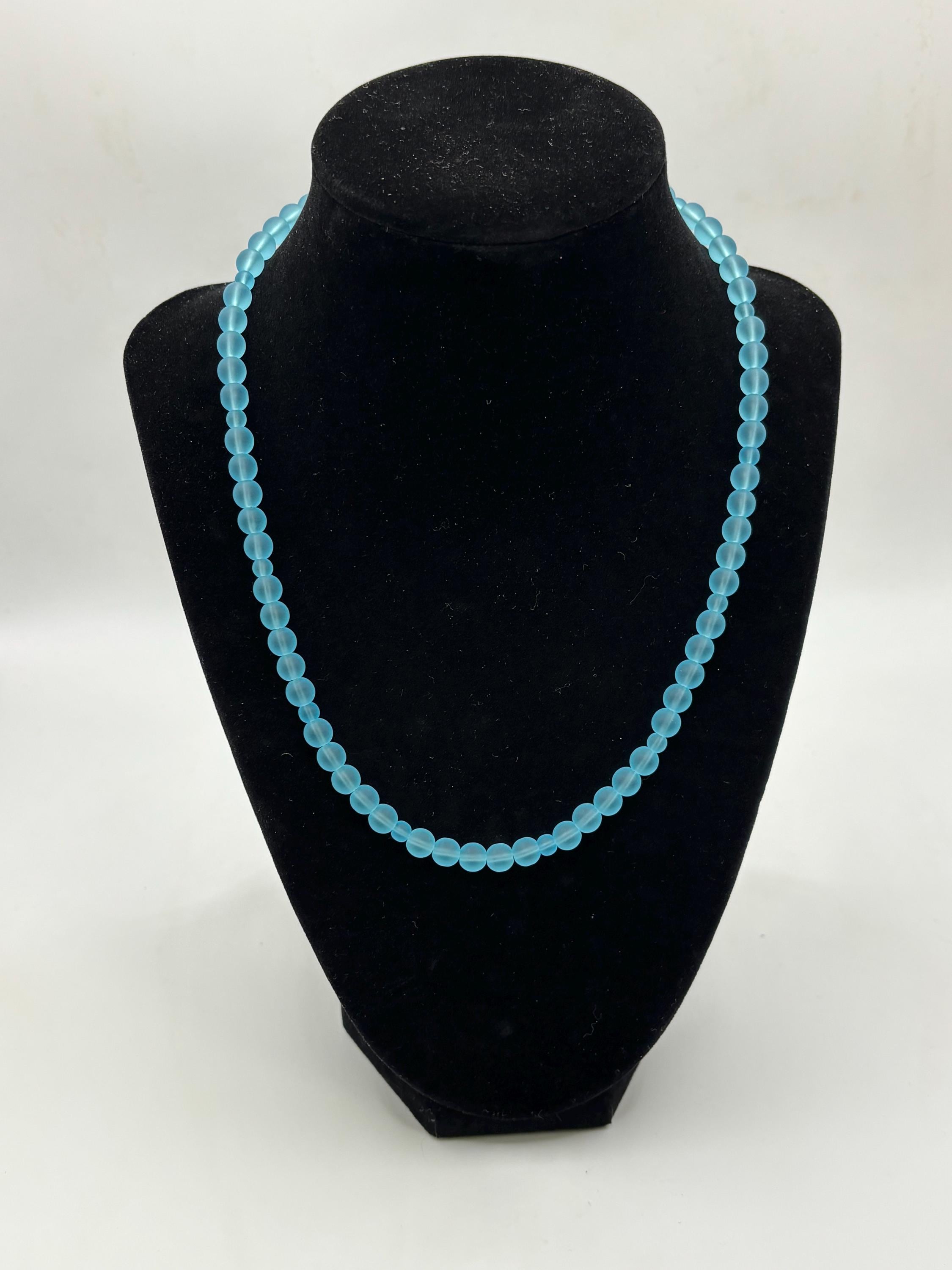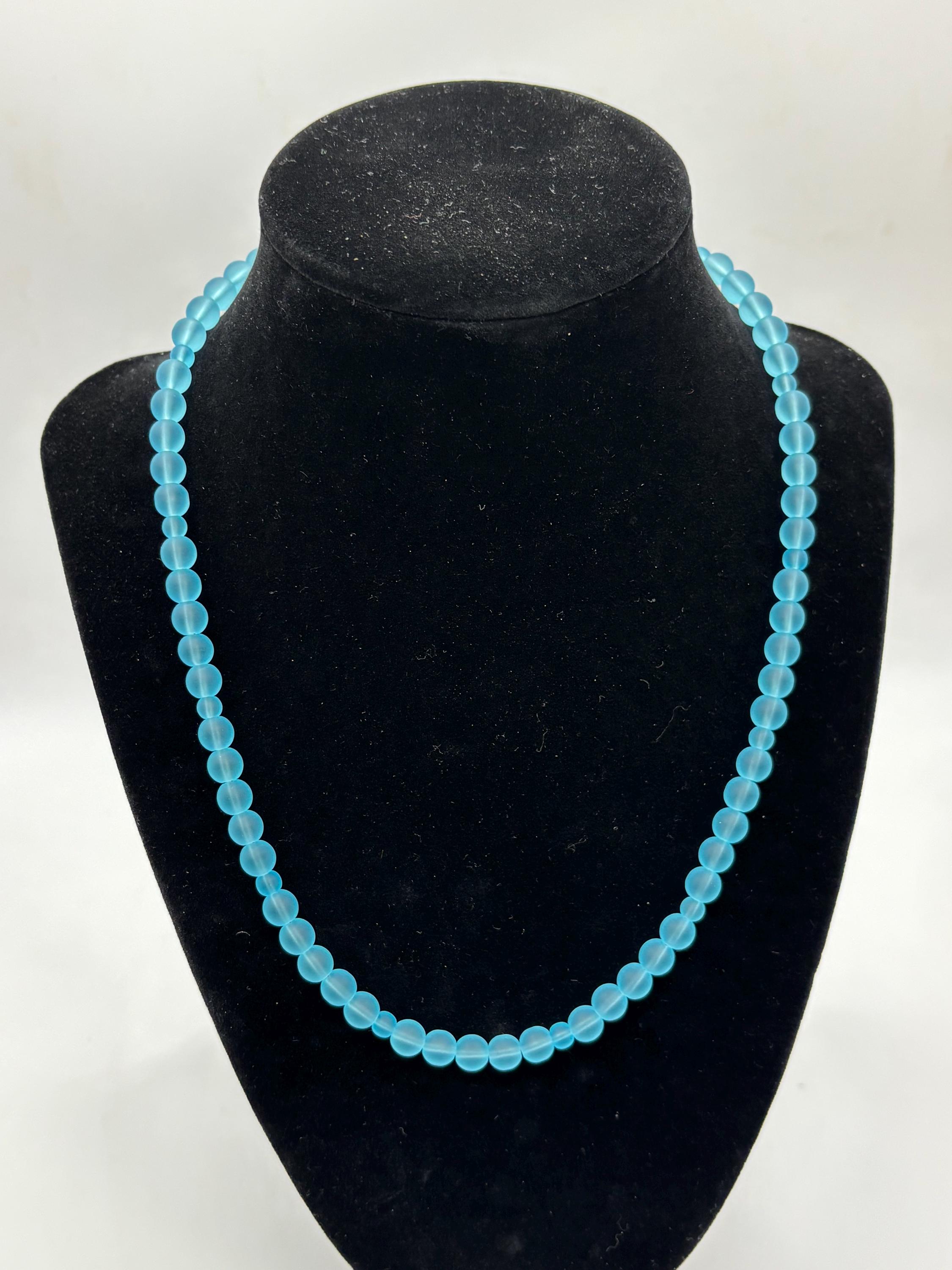 This is a simple yet beautiful Seaglass necklace made with Peacock Blue Seaglass. The round Seaglass beads are 6mm so this necklace is making a statement for sure.