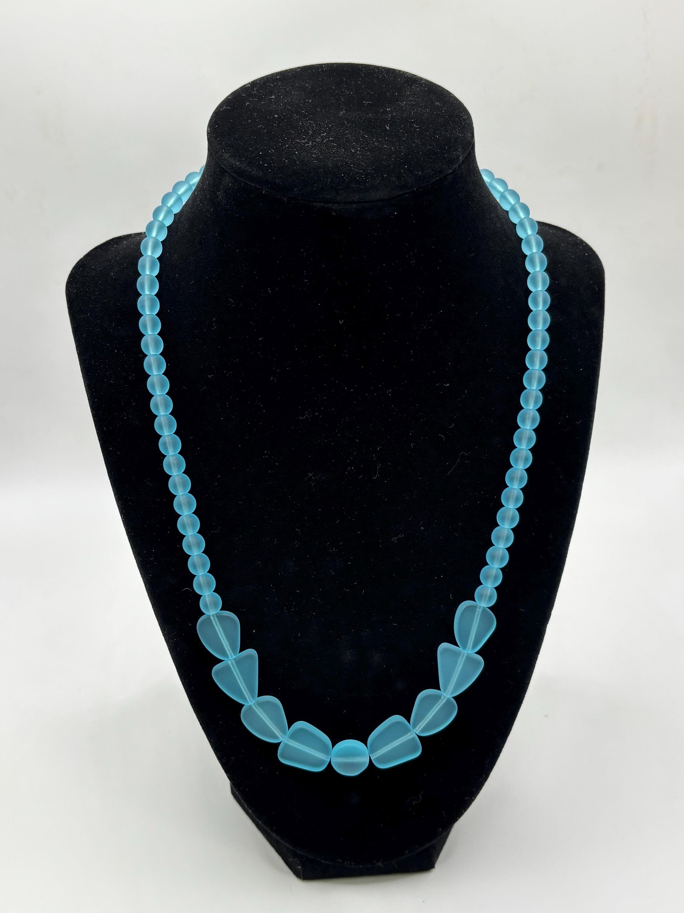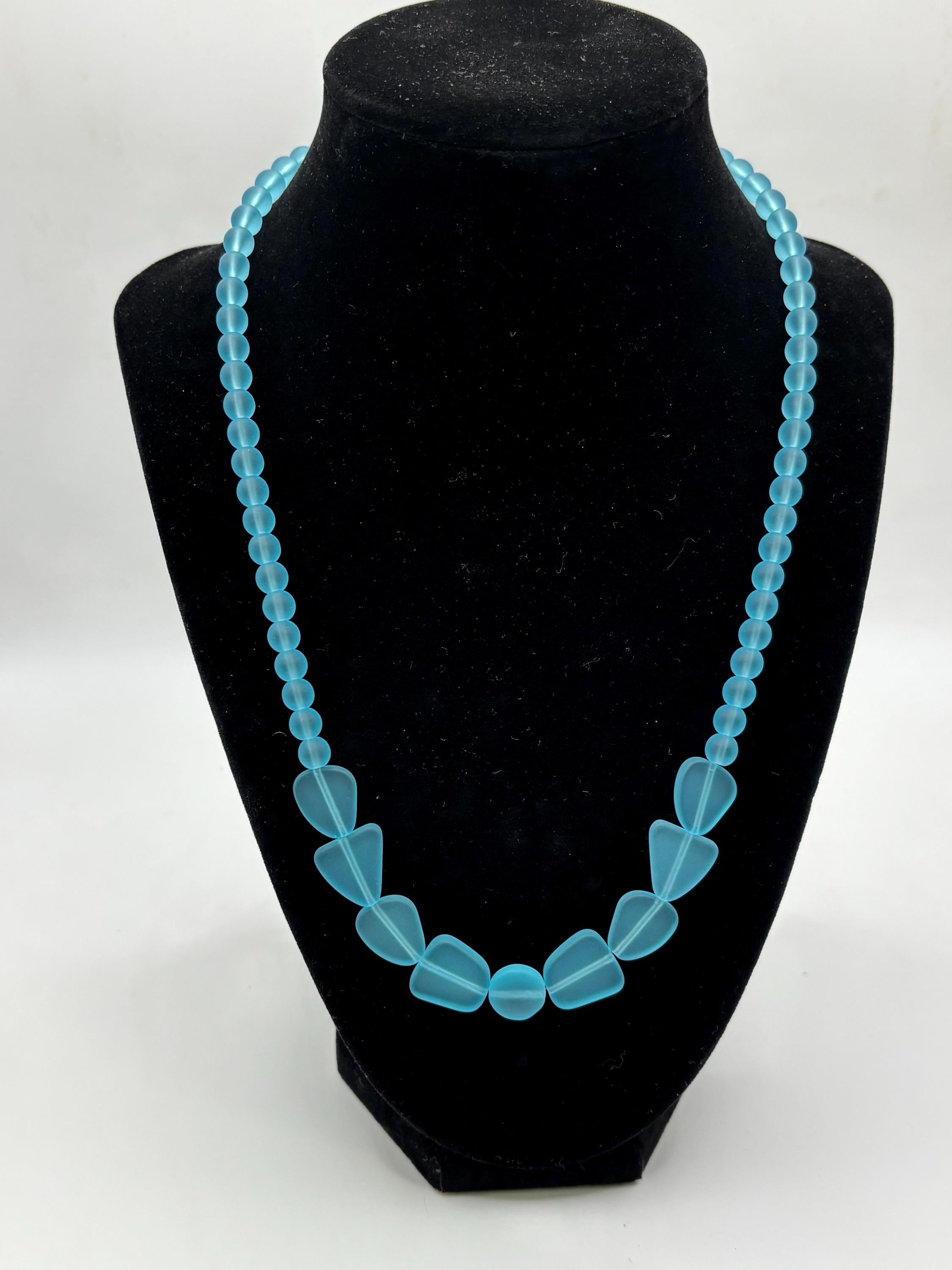 This is a simple yet beautiful Seaglass necklace made with Peacock Blue Seaglass. The round Seaglass beads are 6mm with Freeform sea glass in front. this necklace is making a statement for sure.