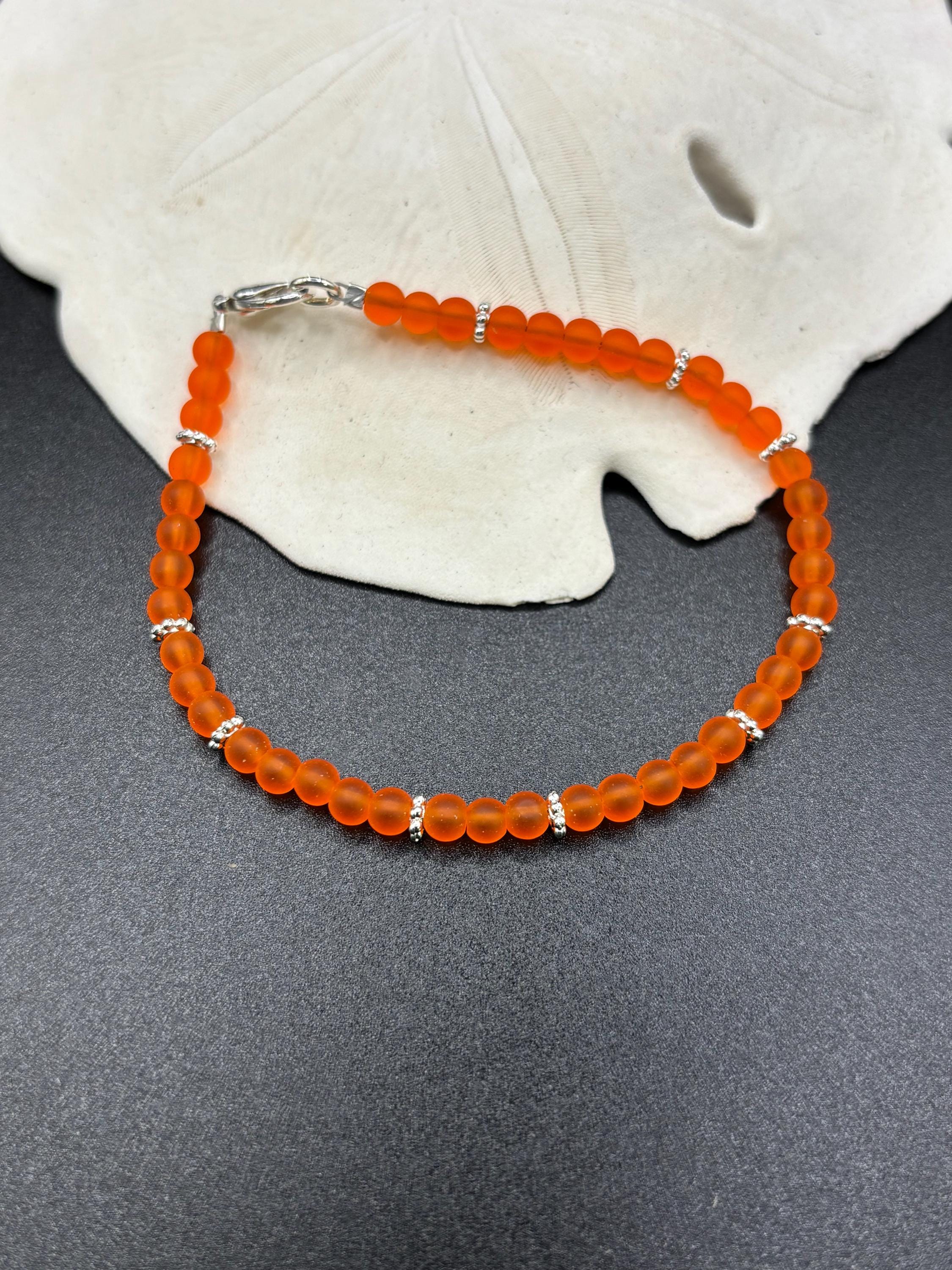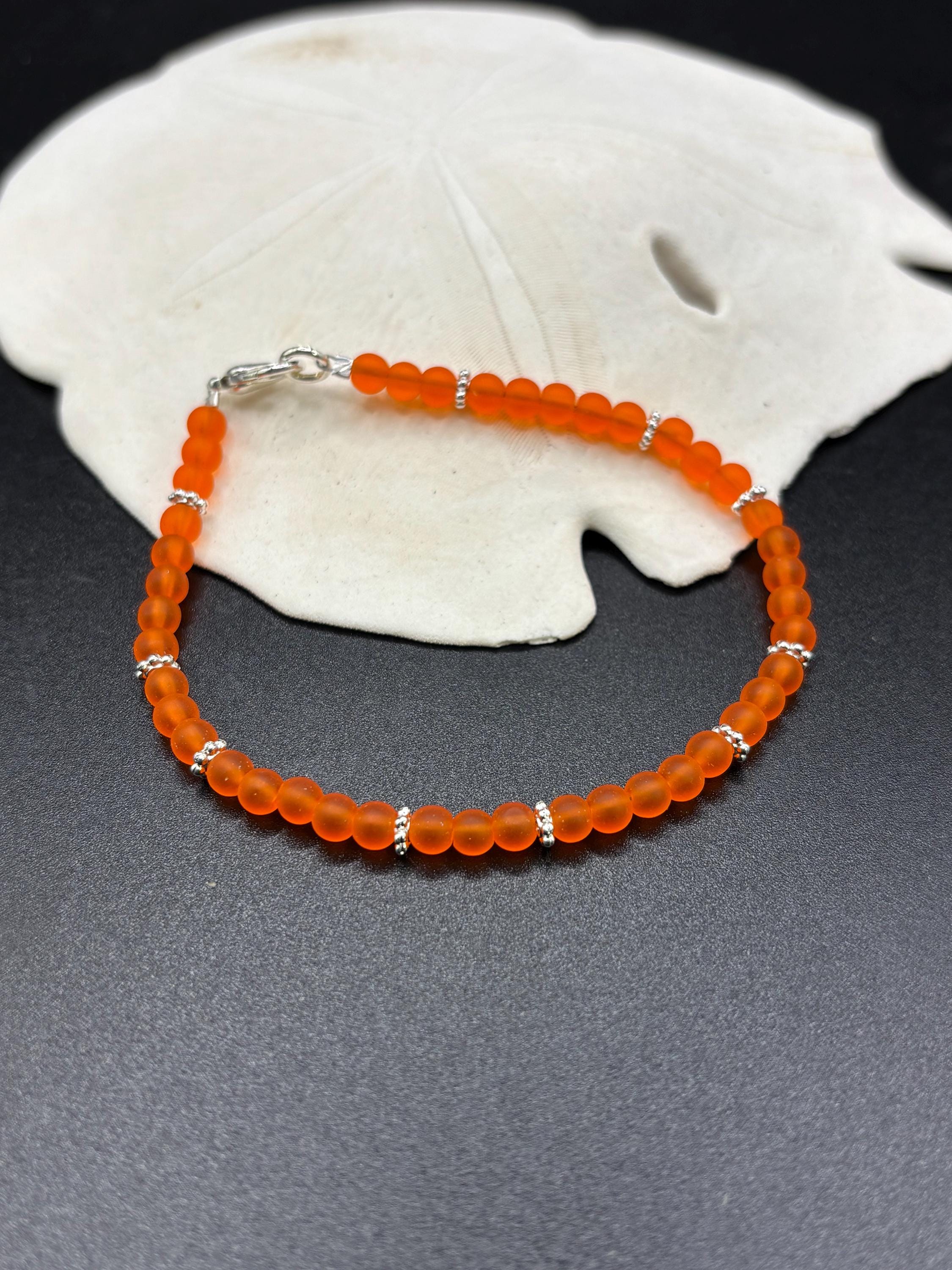 This beautiful Seaglass bracelet is made with orange Colored Seaglass. It is delicate, made with 4mm round beads. Truly for the minimalist.