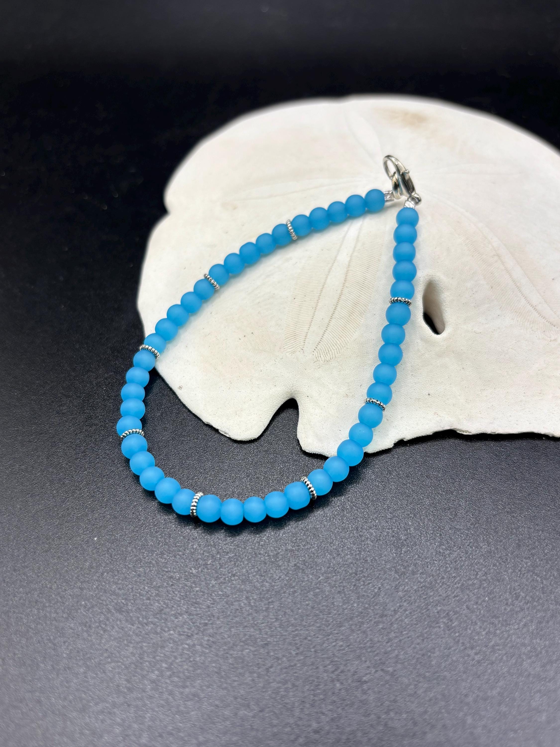 This beautiful Seaglass bracelet is made with blue Colored Seaglass. It is delicate, made with 4mm round beads. Truly for the minimalist.
