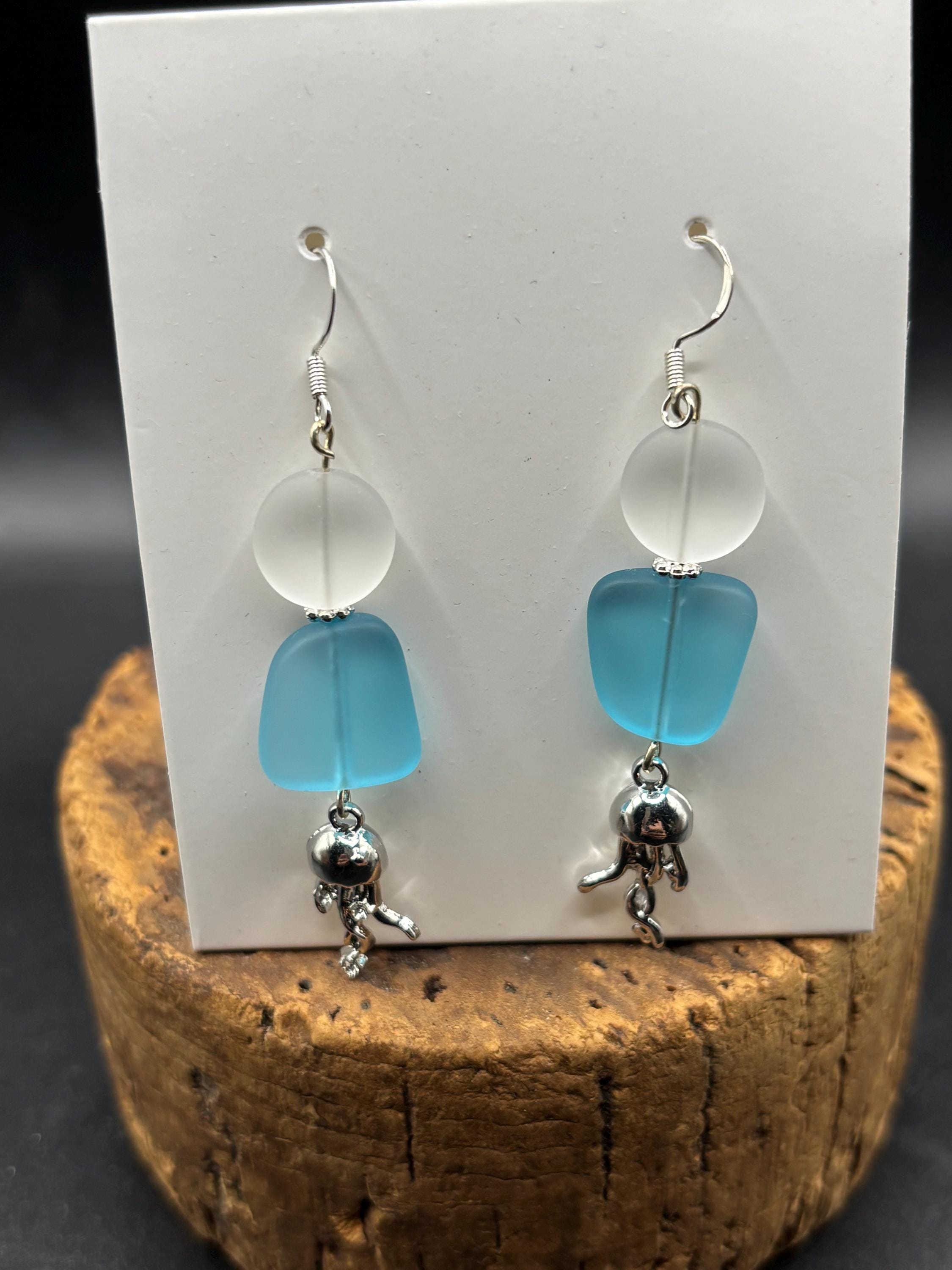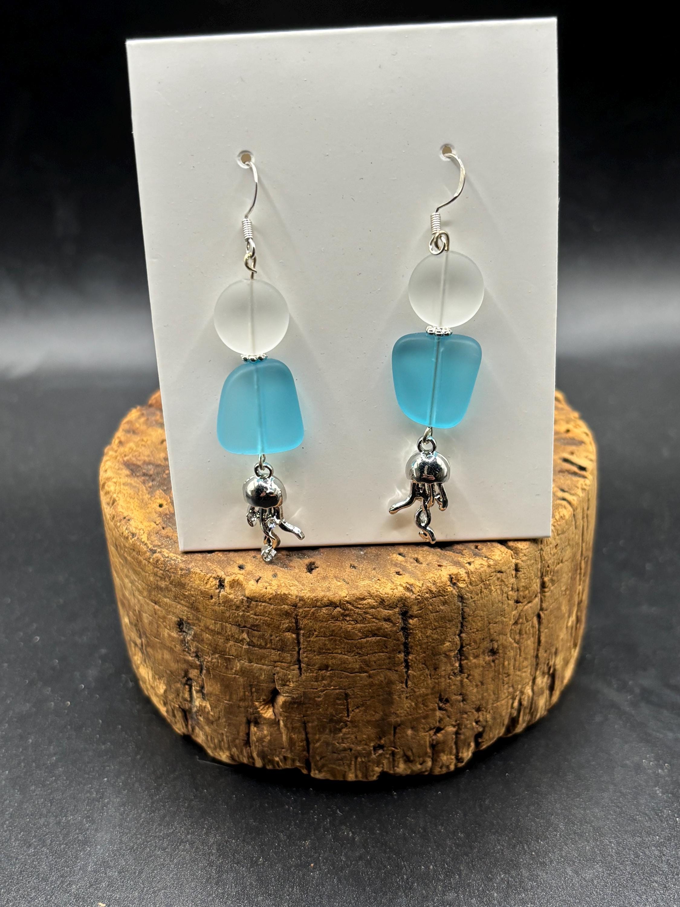 These Jellyfish Seaglass earrings are made with Seaglass. They are on Sterling Silver ear wires and have a seaglass accent.