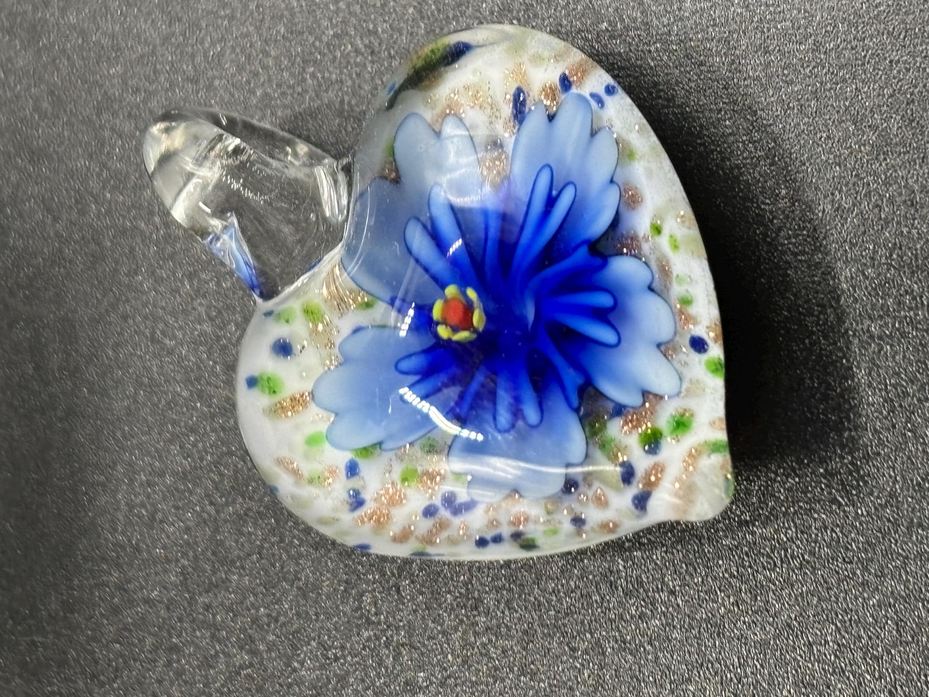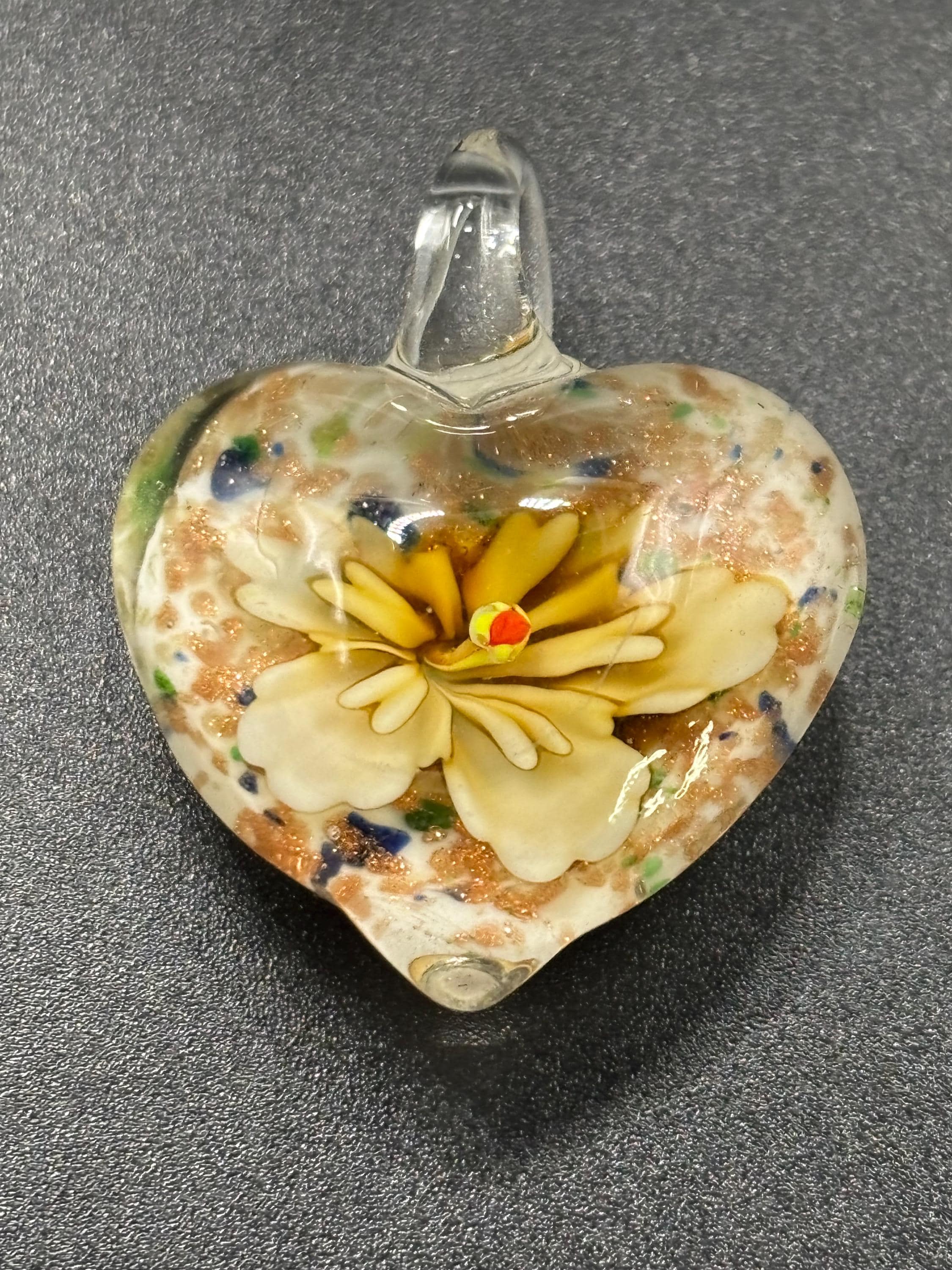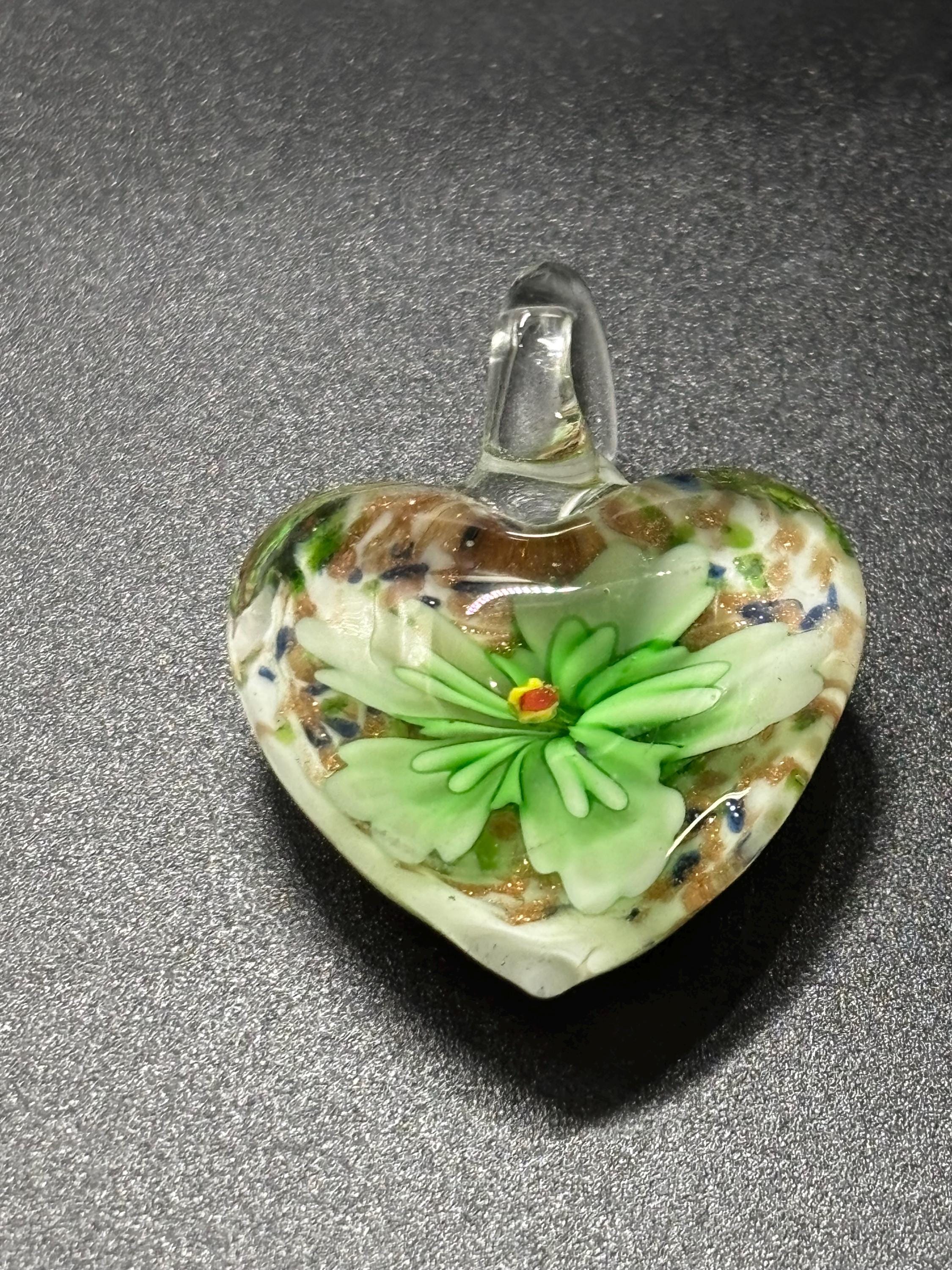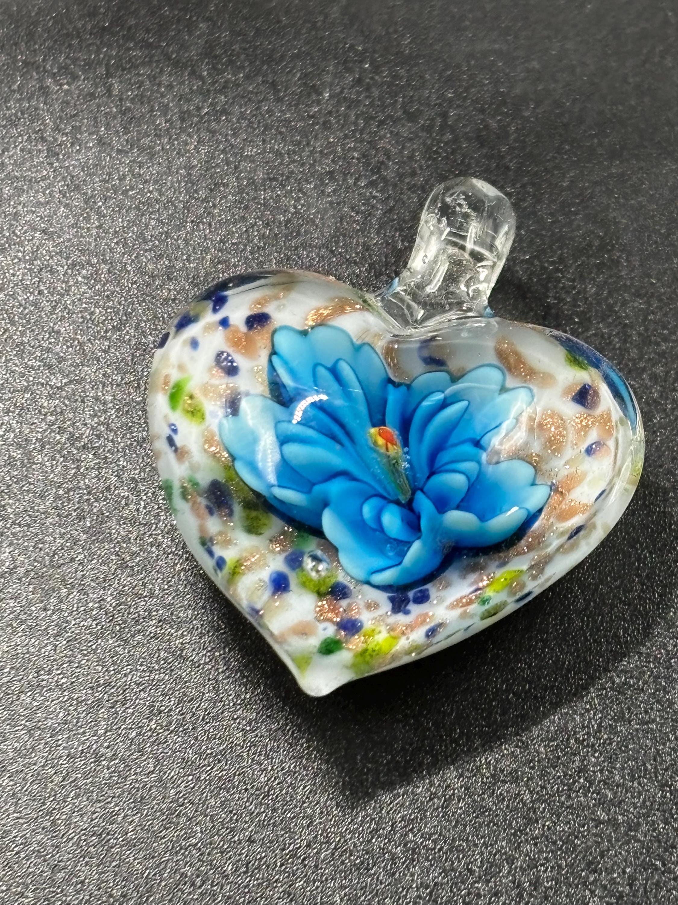 This necklace is made with in a Glass heart shape and has an inlaid flower in the middle. Lampwork Heart necklace, Murano inspired with colorful flowers .