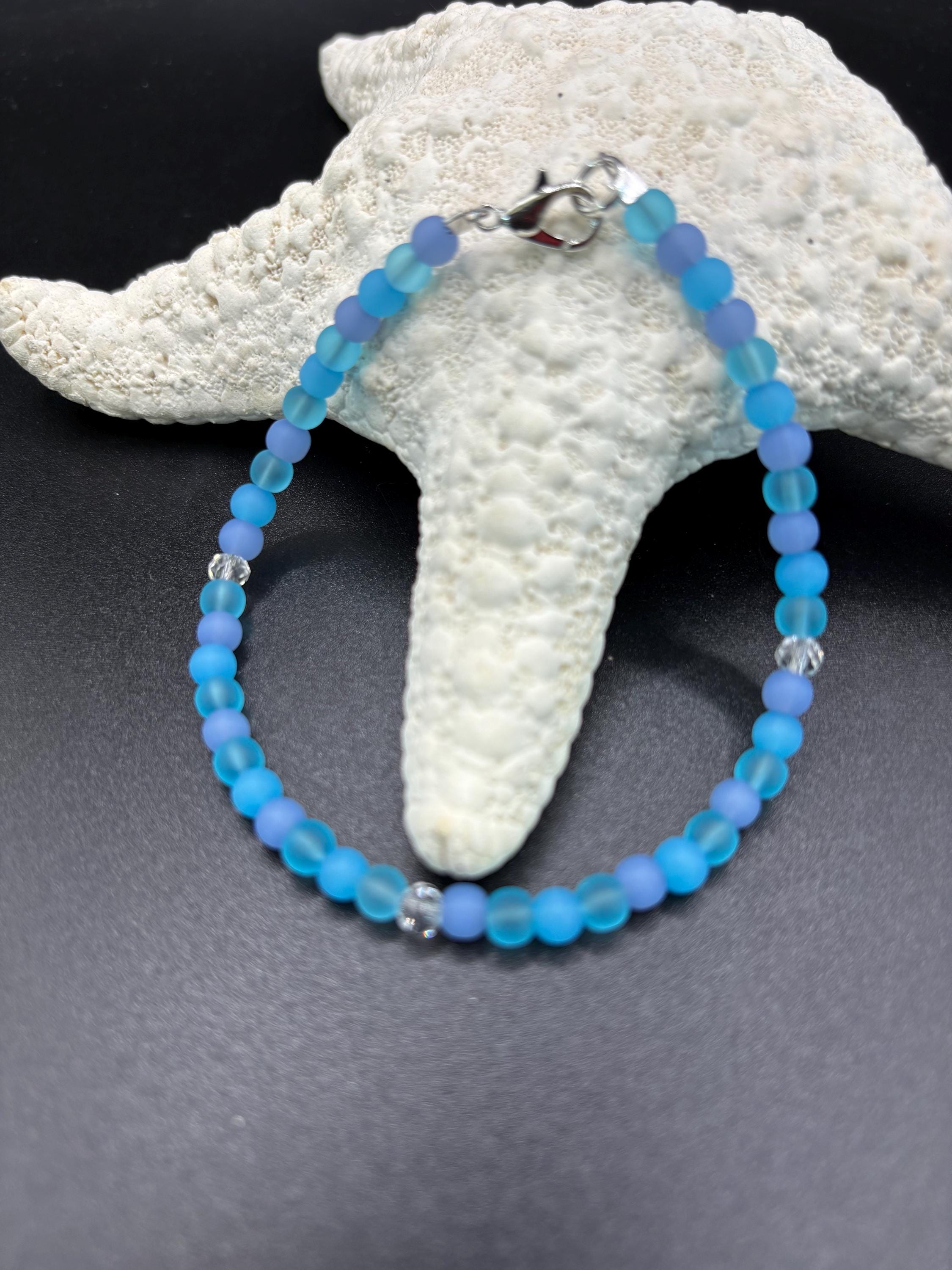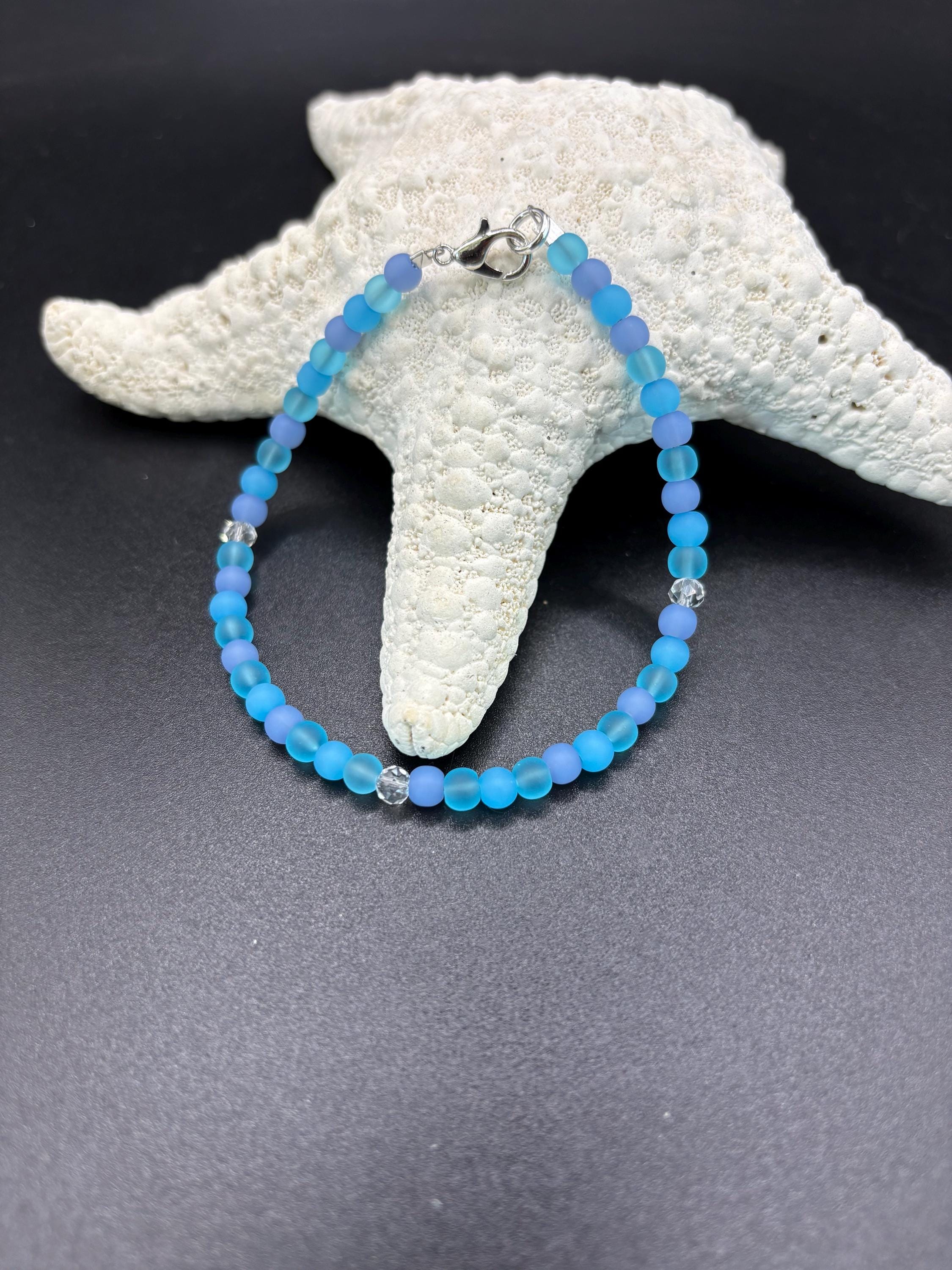 This beautiful Seaglass bracelet is made with 3 shades of Blue Colored Seaglass. It is such a pretty blue color! 4mm beads, this bracelet gives the minimalist look.