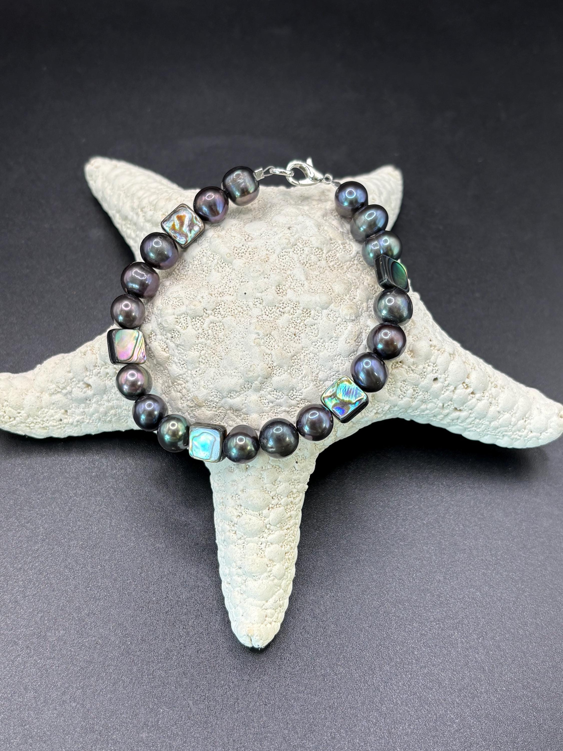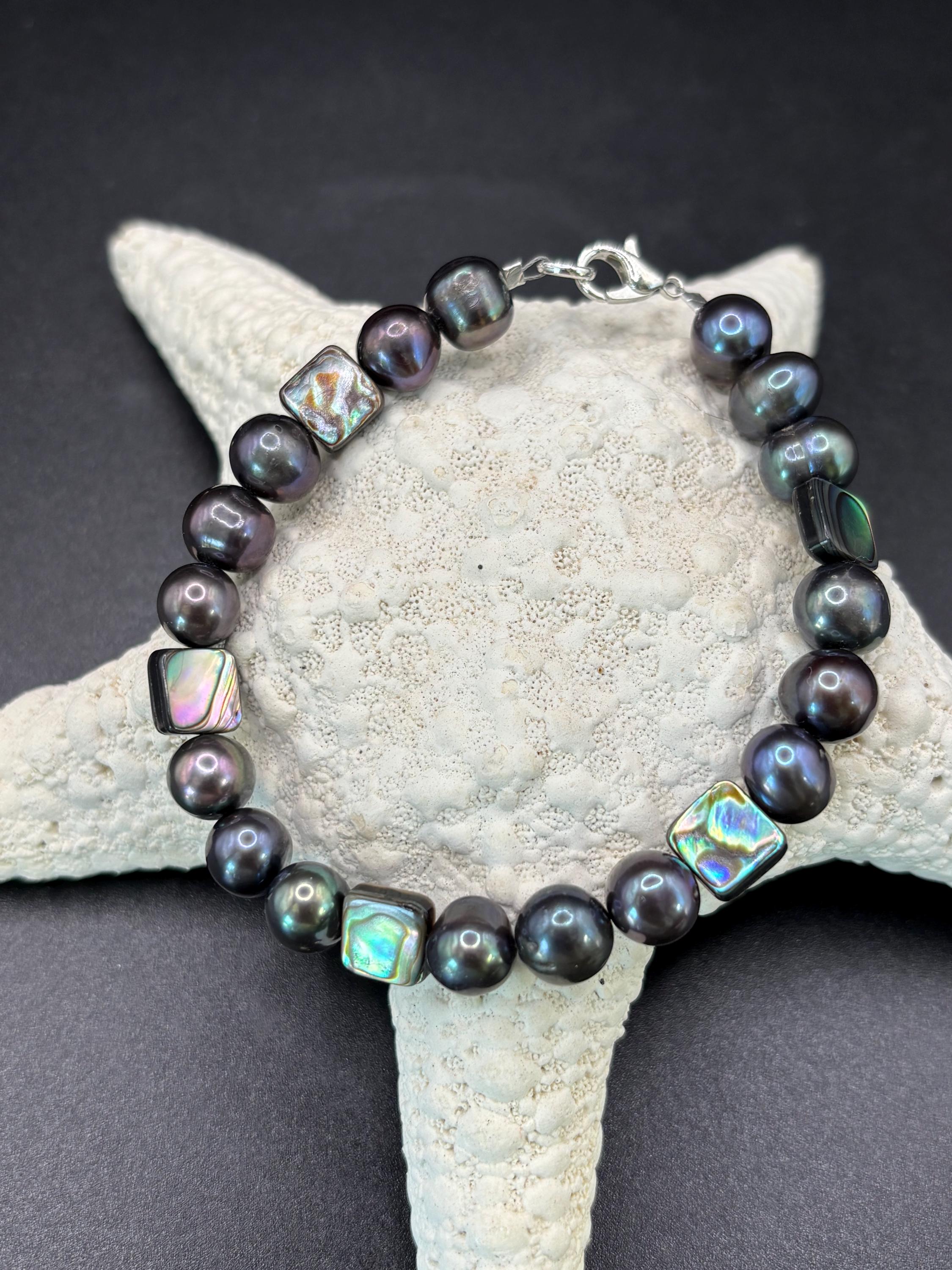 This beautiful bracelet is made black freshwater pearls and Abalone shell beads.