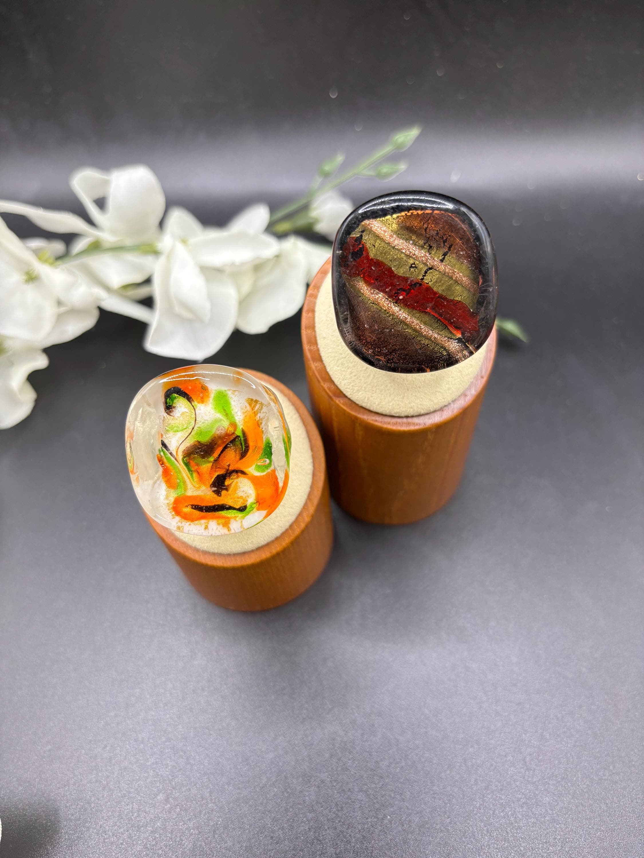 There will be many options by style, color and ring type. There are Millefiori designs as well as Murano inspired glass rings to chose from.